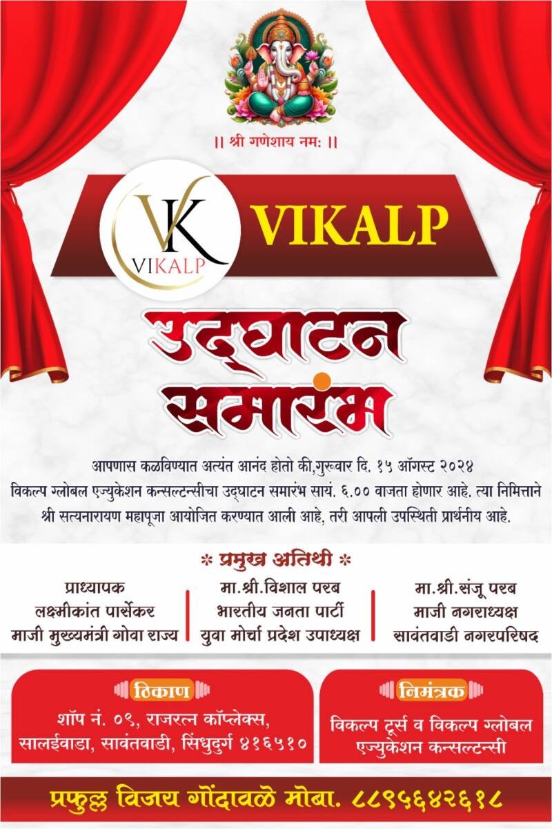 _🙏🏻विकल्प ग्लोबल एज्युकेशन कन्सल्टन्सी उद्घाटन समारंभ निमित्ताने श्री सत्यनारायण महापूजा आयोजित करण्यात आली असून आपली आपली उपस्थिती प्रार्थनीय आहे…!!🙏🏻_
