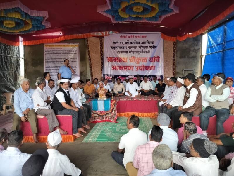 рдЪреМрдХреБрд│ рдЧреНрд░рд╛рдорд╕реНрдерд╛рдВрдиреА рдХрдмреБрд▓рд╛рдпрддрджрд╛рд░ рдЧрд╛рд╡рдХрд░ рдЬрдореАрди рдкреНрд░рд╢реНрдиреА рдЖрдЬ рд╕реНрд╡рд╛рддрдВрддреНрд░реНрдп рджрд┐рдиреА рдЖрдорд░рдг рдЙрдкреЛрд╖рдг рдЖрдгрд┐ рд╕рд╛рдЦрд│реА рдЙрдкреЛрд╖рдгрд╛рд▓рд╛ рд╕реБрд░реБрд╡рд╛рдд рдХреЗрд▓реА рдЖрд╣реЗ. рдЪреМрдХреБрд│ рдпреЗрдереАрд▓ рдХрдмреБрд▓рд╛рдпрд╛рдпрджрд╛рд░ рдЧрд╛рд╡рдХрд░ рдЬрдореАрди рд╣реА рдореВрд│ рдХрдмреБрд▓рд╛рдпрддрджрд╛рд░ рдЧрд╛рд╡рдХрд░рд╛рдВрдЪреА рд╣реЛрддреА рд╣реЗ рд╕рд┐рджреНрдз рдЭрд╛рд▓реЗрд▓реЗ рдЖрд╣реЗ. рдЬрд┐рд▓реНрд╣рд╛рдзрд┐рдХрд╛рд▒реНрдпрд╛рдВрдиреА рддрд╕рд╛ рд╢рд╛рд╕рдирд╛рд▓рд╛ рдЕрд╣рд╡рд╛рд▓ рджрд┐рд▓реЗрд▓рд╛ рдЖрд╣реЗ. резреж рдореЗ резрепрепреп рд╕рд╛рд▓реА рд╢рд╛рд╕рдирд╛рдиреЗ рдХрд╛рдврд▓реЗрд▓реЗ рдЬреНрдЮрд╛рдкрдг рдорд╣рд╛рд░рд╛рд╖реНрдЯреНрд░ рд╢рд╛рд╕рди рдкрд░рд┐рдкрддреНрд░рдХ рд░рджреНрдж рдХрд░рд╛рд╡реЗ.рдЖрдгрд┐ реирежрежреж рд╕рд╛рд▓рдЪреЗ рд╢реБрджреНрдзреАрдкрддреНрд░рдХ рд░рджреНрдж рдХрд░рд╛рд╡реЗ. рдкреВрд░реНрд╡реА рдкреНрд░рдорд╛рдгреЗ рдореВрд│ рдХрдмреБрд▓рд╛рдпрддрджрд╛рд░ рдЧрд╛рд╡рдХрд░ рдЦрд╛рддреНрдпрд╛рдд рдЬрдореАрди рдЧрд╛рд╡рд╛рд▓рд╛ рдкреБрдиреНрд╣рд╛ рдкреНрд░рджрд╛рди рдХрд░рд╛рд╡реА. рдпрд╛рд╕рд╛рдареА рдЖрдЬ рд╕реНрд╡рд╛рддрдВрддреНрд░рджрд┐рдирд╛рдкрд╛рд╕реВрди рдЪреМрдХреБрд│ рдЧреНрд░рд╛рдорд╕реНрдерд╛рдВрдиреА рдЖрдорд░рдг рдЙрдкреЛрд╖рдгрд╛рд▓рд╛ рд╕реБрд░реБрд╡рд╛рдд рдХреЗрд▓реА рдЖрд╣реЗ.рдпрд╛рдд рдкрд╛рдЪ рдЧреНрд░рд╛рдорд╕реНрде рдЙрдкреЛрд╖рдгрд╛рд▓рд╛ рдмрд╕рдгрд╛рд░ рдЖрд╣реЗрдд.рддрд░ рдмрд╛рдХреА рдЧрд╛рд╡рд╛рддреАрд▓ рд╕рд░реНрд╡ рдЧреНрд░рд╛рдорд╕реНрде рд╕рд╛рдЦрд│реА рдЙрдкреЛрд╖рдг рдХрд░реВрди рдкрд╛рдард┐рдВрдмрд╛ рджреЗрдгрд╛рд░ рдЖрд╣реЗрдд. рдЧреНрд░рд╛рдорджреИрд╡рдд рд╕рд╛рддреЗрд░реА рдЖрдгрд┐ рднрд╛рд╡рдИ рдордВрджрд┐рд░рд╛рдд рдирд╛рд░рд│ рдареЗрд╡реВрди рдордЧ рдЙрдкреЛрд╖рдгрд╛рд▓рд╛ рд╕реБрд░реБрд╡рд╛рдд рдХрд░рдгреНрдпрд╛рдд рдЖрд▓реА. рдпрд╛рд╡реЗрд│реА рдЧреНрд░рд╛рдордкрдВрдЪрд╛рдпрдд рдХрд╛рд░реНрдпрд╛рд▓рдпрд╛рдЬрд╡рд│ рдЪреНрдпрд╛ рд╕рднрд╛рдЧреГрд╣рд╛рдд рдЙрдкреЛрд╖рдг рд╕реБрд░реБрд╡рд╛рдд рдЭрд╛рд▓реА рдЖрд╣реЗ. рдкрд╛рдЪ рдЬрди рдЖрдорд░рдг рдЙрдкреЛрд╖рдгрд╛рд▓рд╛ рдмрд╕рд▓реЗ рдЖрд╣реЗрдд.рдпрд╛рдд рджрд┐рдиреЗрд╢ рдЧрд╛рд╡рдбреЗ,рдЖрдирдВрдж рдЧрд╛рд╡рдбреЗ,рд╕реБрд░реЗрд╢ рдЧрд╛рд╡рдбреЗ,рдирд╛рд░рд╛рдпрдг рдЧрд╛рд╡рдбреЗ,рдзрдирдВрдЬрдп рдЧрд╛рд╡рдбреЗ рд╣реЗ рдЖрдорд░рдг рдЙрдкреЛрд╖рдг рддрд░ рдкреВрд░реНрдг рдЧрд╛рд╡ рд╕рд╛рдЦрд│реА рдЙрдкреЛрд╖рдг рдХрд░реВрди рдкрд╛рдард┐рдВрдмрд╛ рджреЗрдгреНрдпрд╛рд╕рд╛рдареА рдЙрдкреЛрд╖рдг рдХрд░рдгрд╛рд░ рдЖрд╣реЗ. рдпрд╛рд╡реЗрд│реА рд╕рд░рдкрдВрдЪрд╛рд╕рд╣ рдЧрд╛рд╡рд╛рддреАрд▓ рд╕рд░реНрд╡ рдЧреНрд░рд╛рдорд╕реНрде рдЙрдкрд╕реНрдерд┐рдд рд╣реЛрддреЗ. рдЖрдВрдмреЛрд▓реА рдорд╛рдЬреА рд╕реИрдирд┐рдХ рд╕рдВрдШрдЯрдирд╛ рджреЗрдЦреАрд▓ рдкрд╛рдард┐рдВрдмрд╛ рджреЗрдгреНрдпрд╛рд╕рд╛рдареА рдЙрдкрд╕реНрдерд┐рдд рд╣реЛрддреЗ.