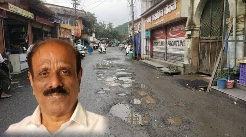 बाजारपेठ परिसरातील खड्डे त्वरित बुजवा अन्यथा पुन्हा धडक देऊ – माजी नगराध्यक्ष बबन साळगावकर.