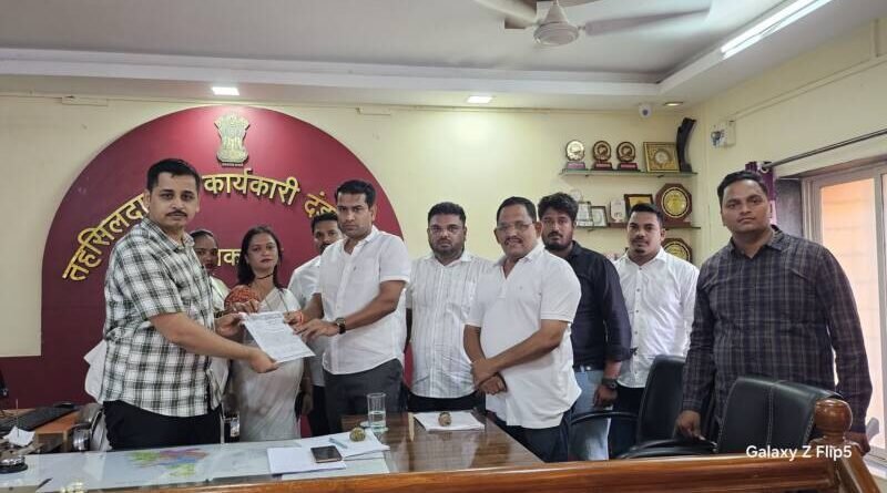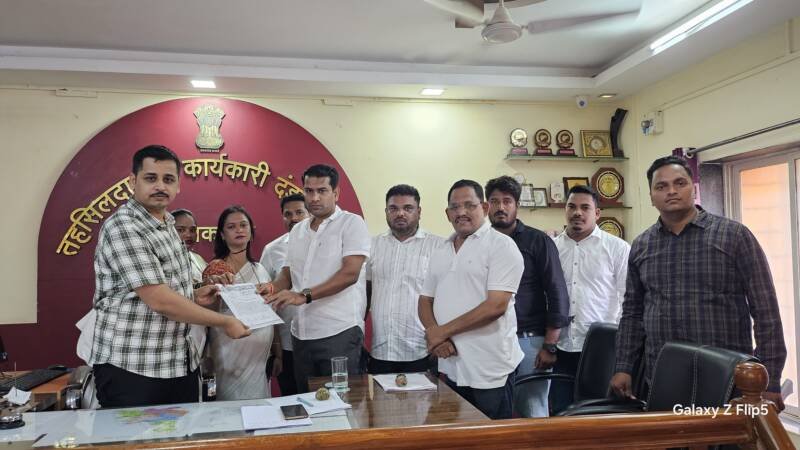 अवकाळी पावसामुळे भात शेतीची नुकसान भरपाई मिळण्याबाबत उ.बा.ठा शिवसेनेकडून तहसीलदार यांना निवेदन