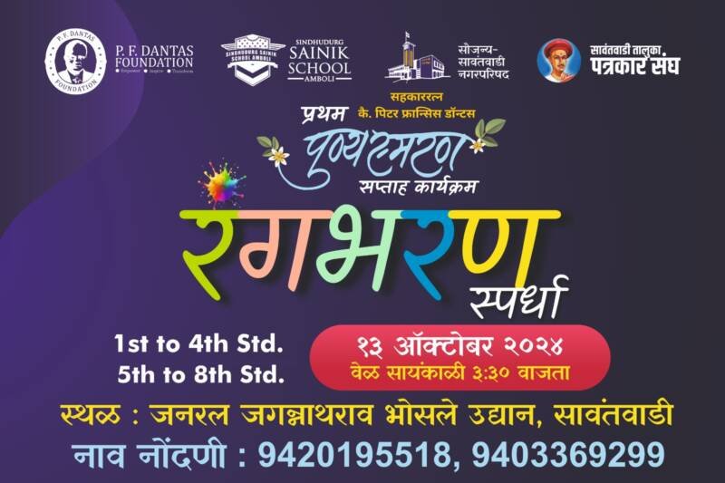 पी.एफ. डॉन्टस फाऊंडेशन,सैनिक स्कूल आंबोली, सावंतवाडी नगर परिषद व सावंतवाडी पत्रकार संघ यांच्या संयुक्त विद्यमाने रविवारी सावंतवाडी येथे शालेय रंगभरण स्पर्धेचे आयोजन.