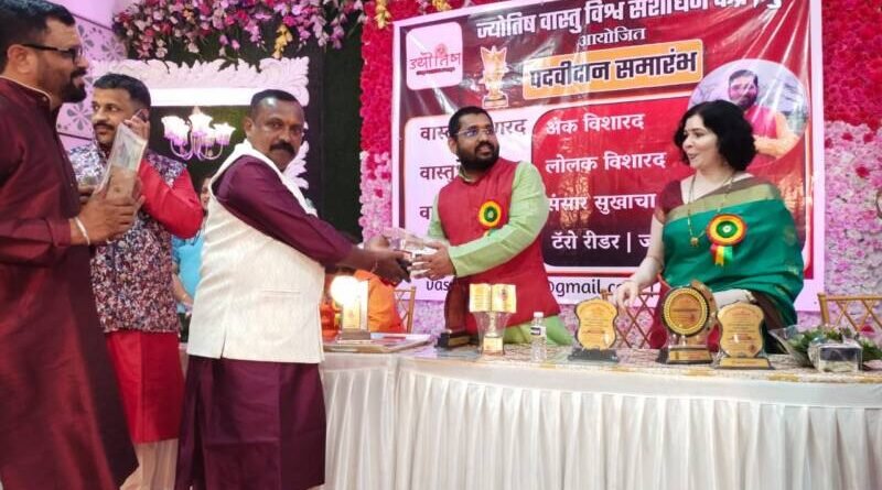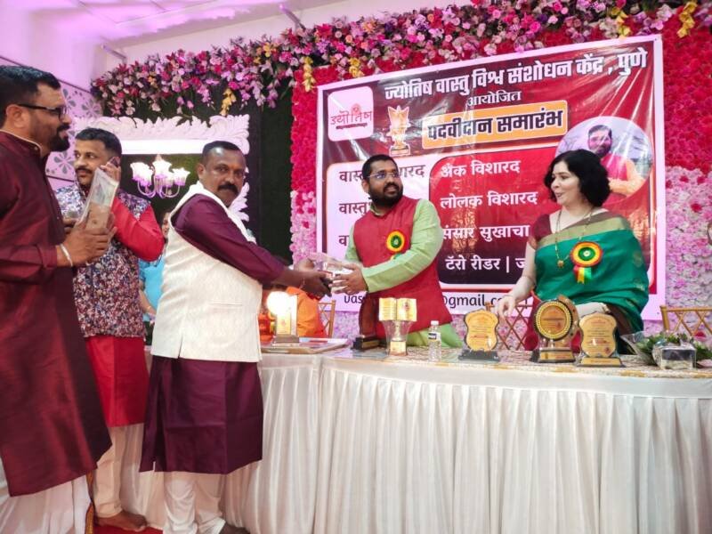ज्योतिष वास्तू विश्व संशोधन केंद्र, पुणे यांच्यावतीने २० ऑक्टोबर रोजी विणकर सभागृह येथे जोतिष वास्तू विश्व केंद्रातील विविध कोर्समध्ये उत्तीर्ण झालेल्या व्यक्तींना पदवी प्रदान करण्यात आली. वास्तू विशारद, वास्तू रत्न, वास्तू भूषण आणि लोलक विशारद, अंक विशारद यांसारख्या कोर्सेसमध्ये प्रवेश घेऊन यशस्वीरित्या आपले वर्ग पूर्ण करून घेतल्या गेलेल्या, परीक्षेमध्ये घवघवीत यश मिळविलेल्या सर्व विद्यार्थ्यांना प्रमाणपत्र व ट्रॉफी देऊन त्यांचा सन्मान करण्यात आला.