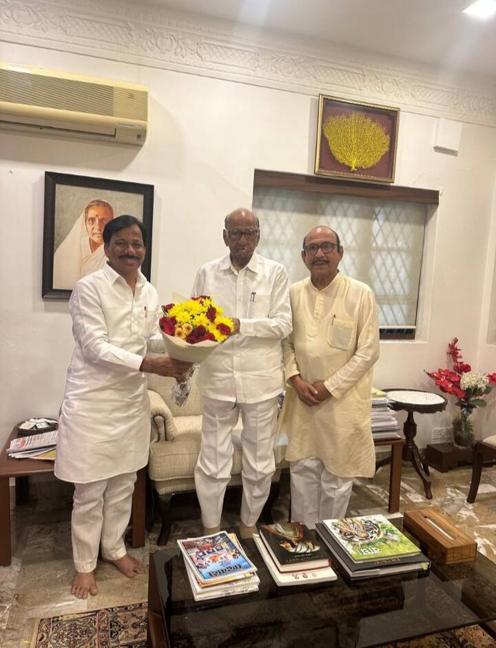 *🎴सावंतवाडी, दि-०४:-* राष्ट्रवादी काँग्रेस पक्षाचे अध्यक्षशरदचंद्रजी पवार यांची त्यांच्या मुंबई येथील सिल्व्हर ओक या निवासस्थानी महाविकास आघाडीचे उमेदवार राजन तेली यांनी भेट घेऊन त्यांचे आशीर्वाद घेतले. सोबत राष्ट्रवादी काँग्रेस(शरदचंद्रजी पवार)पक्षाचे मा.राज्य मंत्री प्रवीणभाई भोसले उपस्थित होते. दरम्यान शरद पवार यांनी महाविकास आघाडीच्या अधिकृत उमेदवाराला निवडून आणण्यासाठी स्थानिक पदाधिकारी व कार्यकर्त्यांना कामाला लागण्याचे आदेश दिले.