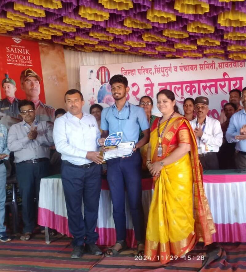*🎴बांदा, दि- ३०:-* सिंधुदुर्ग जिल्ह्यातील थंड हवेचे प्रसिद्ध असलेले ठिकाण आंबोली येथे थंडीच्या दिवसात संपन्न झालेल्या ५२ व्या सावंतवाडी तालुकास्तरीय विज्ञान प्रदर्शन आंबोली येथील सिंधुदुर्ग सैनिक स्कूल मध्ये घेण्यात आले होते. त्या प्रदर्शनात सावंतवाडी तालुक्यातील अनेक शाळांनी सहभाग घेतला होता.बांदा येथील खेमराज प्रशालेच्या माध्यमिक गटाचे प्रतिनिधित्व करणाऱ्या विद्यार्थ्यांच्या गटाला द्वितीय क्रमांक प्राप्त झाला आहे.या गटाचे प्रतिनिधित्व विद्यार्थी विघ्नेश यशवंत माधव यांनी केले होते. खेमराज प्रशालेचे प्रयोगशाळा सहाय्यक श्री.सूर्यकांत चव्हाण यांनी प्रयोगशाळा सहाय्यक परिचर गटातून प्रथम क्रमांक पटकावला.विद्यार्थी विघ्नेश याने कार्बन अब्सोरप्शन अँड पुरिफिकेशन सिस्टम (Carbon Absorption and purification system) ह्या प्रोजेक्टची मांडणी केली होती.ही मांडणी व्यवस्थित रित्या प्रदर्शित करून परीक्षकांच्या विचारलेल्या प्रश्नांना अचूक उत्तरे दिली व हा प्रोजेक्ट जीवनामध्ये किती महत्त्वाचा आहे हे परीक्षकांना पटवून दिले. त्यामुळे त्याच्या प्रोजेक्टला द्वितीय क्रमांक प्राप्त झाला. शाळेतील मुख्याध्यापक,शिक्षक वर्ग तसेच विद्यार्थी मित्र व सावंतवाडी तालुक्यातून या दोघांचेही कौतुक होत आहे.