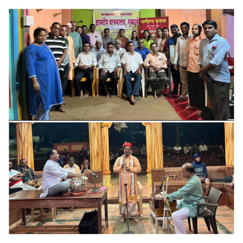 *🎴मांद्रे, दि- ०३:-* येथील अखंडित ४१४ व्या मासिक कार्यक्रमांतर्गत ‘ साहित्य संगमच्या ‘मंडळाच्या सदस्यांनी गुळदुवे येथील ज्ञानदीप वाचनालयास भेट देऊन वाचनालयाच्या कार्यकारिणी सदस्यांशी वार्तालाप केला व वाचनालयातील ग्रंथ पाहणी केली. सिधुदुर्गातील गुरुवर्य वि .स. खांडेकर विद्या प्रतिष्ठान संचलित रेडी या ठिकाणच्या माध्यमिक विद्यालयाच्या मुख्याध्यापक पदावरून निवृत्त झाल्यावर श्रीपाद गणपत पेंडसे यांनी १९९३ साली गुळदुवे या सहाशे लोकवस्ती असलेल्या या आपल्या छोट्याशा गावात वाचन संस्कृती वाढीस लागावी या उद्देशाने पुढाकार घेऊन स्थापन केलेल्या ज्ञानदीप वाचनालयात आज घडीला ७५०० पुस्तके असून सात वर्तमानपत्रे व दहा नियतकालिके वाचकांसाठी उपलब्ध आहेत. या वाचनालयाचे ६० आजीव सदस्य असून १०५ सर्वसाधारण सदस्य आहेत अशी माहिती वाचनालयाचे कार्यवाह तथा आरोंदा हायस्कूलचे माजी मुख्याध्यापक श्री अरुण धर्णे यांनी दिली. या कार्यक्रमाच्या प्रारंभी साहित्य संगम चे जेष्ठ सदस्य मुख्याध्यापक दिलीप मेथर यांनी उपस्थितांचे स्वागत व प्रास्ताविक केले तर कार्यवाह गजानन मांजरेकर यांनी साहित्य संगम च्या ३४ वर्षाच्या अखंडित वाटचालीविषयी माहिती दिली. ज्येष्ठ सदस्य विष्णुबुवा शेटगांवकर यांनी साहित्य संगम च्या सदस्यांचा तर अरुण धर्णे यांनी ज्ञानदीप वाचनालयाच्या कार्यकारिणीच्या सदस्यांचा परिचय करून दिला .वाचनालयाचे अध्यक्ष फटू धर्णे, खजिनदार ज्योती पेंडसे, उपाध्यक्ष मोहन कारेकर ,सहकार्यवाह प्रशांत खोबरेकर, सदस्य तथा गावचे माजी सरपंच रुपेश धर्णे , संतोष सावंत, ग्रंथपाल नंदकिशोर धर्णे , केशरीनाथ केदार यांनी साहित्य संगम च्या सदस्यांचे गुलाब पुष्प देऊन स्वागत केले. साहित्य संगमच्या वतीने प्रगती परब यांनी तर वाचनालयाच्या वतीने अरुण धर्णे यांनी ऋणनिर्देश केले .हरी शेटगांवकर, महेंद्र परब ,रश्मी तारी, संध्या आरोलकर ,शंकर शेटगांवकर, शरद गावडे, अर्चना परब, नेहा वेंजी, निरंजन मांद्रेकर ,प्रभाकर गावकर, अजित शेटगांवकर हे साहित्य संगम चे सदस्य तसेच आजगाव येथील साहित्य प्रेरणा कट्ट्याचे समन्वयक तथा मालवणी भाषेतील सुप्रसिद्ध कवी विनय सौदागर ,निवृत्त शिक्षक विनायक उमर्ये वाचनालयाचे ग्रंथसेवक अनिल जोशी हे साहित्य संगमच्या वार्षिक ग्रंथालय भेट कार्यक्रमात सहभागी झाले होते. यावेळी श्री विष्णूबुवा शेटगांवकर यांनी छोटीशी शब्द रूपी कविता करून उपस्थितांमध्ये एक उत्साह निर्माण केला.ग्रंथालय भेट कार्यक्रमानंतर वाचनालयाच्या शेजारीत श्री देवी सातेरी मंदिरात ह .भ. प. विष्णुबुवा शेटगांवकर यांचे सुश्राव्य कीर्तन संपन्न झाले .प्रभाकर गावकर (संवादिनी) व अजय शेटगांवकर (तबला) यांनी 