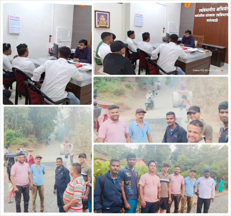 दरम्यान रस्त्याच्या कामाची पाहणी करण्यासाठी न्हावेली युवा उपसरपंच अक्षय पार्सेकर सोबत राज धवण, रितेश पार्सेकर, अमोल पार्सेकर, आनंद मसुरकर, तुकाराम पार्सेकर, ॲंन्थोनी आदी उपस्थित होते. रस्ता खड्डेमय असल्याने गावात ग्रामस्थांकडून नाराजी व्यक्त होत होती.