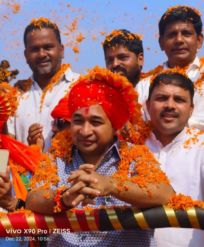 рд╕рд┐рдВрдзреБрджреБрд░реНрдЧ рдЬрд┐рд▓реНрд╣реНрдпрд╛рдЪреНрдпрд╛ рд░рд╛рдЬрдХреАрдп рдЗрддрд┐рд╣рд╛рд╕рд╛рдд рдкреНрд░рдердордЪ рдПрд╡рдвреЗ рднрд╡реНрдпрджрд┐рд╡реНрдп рд╕реНрд╡рд╛рдЧрдд рдЕрдиреБрднрд╡рдгреНрдпрд╛рдЪрд╛ рдорд╛рди рдирд╛.рдирд┐рддреЗрд╢ рд░рд╛рдгреЗ рдпрд╛рдВрдирд╛ рдкреНрд░рд╛рдкреНрдд рдЭрд╛рд▓рд╛. рдЦрд╛рд░реЗрдкрд╛рдЯрдг рдпреЗрдереЗ рдореЛрдареНрдпрд╛ рд╕рдВрдЦреНрдпреЗрдиреЗ рдХрд╛рд░реНрдпрдХрд░реНрддреЗ рдЖрдгрд┐ рдирд╛рдЧрд░рд┐рдХ рдпрд╛рдВрдиреА рд╕рдХрд╛рд│рдкрд╛рд╕реБрдирдЪ рд╣рдЬреЗрд░реА рд▓рд╛рд╡рд▓реА рд╣реЛрддреА. рджреЛрди рдореЛрдареНрдпрд╛ рдХреНрд░реЗрдирдЪреНрдпрд╛ рдорд╛рдзреНрдпрдорд╛рддреБрди рднрд╡реНрдп рдкреБрд╖реНрдкрд╣рд╛рд░ рдареЗрд╡рдгреНрдпрд╛рдд рдЖрд▓реЗ рд╣реЛрддреЗ. рдкреБрд╖реНрдкрд╡реГрд╖реНрдЯреА рдХрд░рдгреНрдпрд╛рд╕рд╛рдареА рддрдмреНрдмрд▓ релрез рдЬреЗрд╕реАрдмреА рд╕рдЬреНрдЬ рдЭрд╛рд▓реЗ рд╣реЛрддреЗ. рдордВрддреНрд░реА рдирд┐рддреЗрд╢ рд░рд╛рдгреЗ рдпрд╛рдВрдЪреЗ рдЦрд╛рд░реЗрдкрд╛рдЯрдг рдпреЗрдереЗ рдЖрдЧрдорди рдЭрд╛рд▓реНрдпрд╛рдирдВрддрд░ рдЬреЛрд░рджрд╛рд░рдкрдгреЗ рдШреЛрд╖рдгрд╛рдмрд╛рдЬреА рдХрд░рдд рдЖрдгрд┐ рдлрдЯрд╛рдХреНрдпрд╛рдВрдЪреА рдЖрддреАрд╖рдмрд╛рдЬреА рдХрд░рдд, рдвреЛрд▓ рдкрдердХрд╛рдВрдЪреНрдпрд╛ рд╡рд╛рджреНрдпрд╛рд╡рд░ рд╕реНрд╡рд╛рдЧрдд рдХрд░рдгреНрдпрд╛рдд рдЖрд▓реЗ. рдпрд╛рд╡реЗрд│реА рд░рдерд╛рд╡рд░ рд╕реНрд╡рд╛рд░ рд╣реЛрдд рдордВрддреНрд░реА рдирд┐рддреЗрд╢ рд░рд╛рдгреЗ рд╣реЗ рдореБрдЦреНрдп рдордВрдЪрдХрд╛рдЪреНрдпрд╛рджрд┐рд╢реЗрдиреЗ рдЬрд╛рдд рдЕрд╕рддрд╛рдирд╛ релрез рдЬреЗрд╕реАрдмреАрдЪреНрдпрд╛ рдорд╛рдзреНрдпрдорд╛рддреБрди рдкреБрд╖реНрдкрд╡реГрд╖реНрдЯреА рдХрд░рдгреНрдпрд╛рдд рдЖрд▓реНрдпрд╛рдиреЗ рд╕рдВрдкреБрд░реНрдг рд╡рд╛рддрд╛рд╡рд░рдг рднрд╛рд░рд╛рд╡реБрди рдЧреЗрд▓реЗ рд╣реЛрддреЗ. рдПрдЦрд╛рджреНрдпрд╛ рд░рд╛рдЬрдХреАрдп рдиреЗрддреНрдпрд╛рдЪреА рдПрд╡рдвреНрдпрд╛ рднрд╡реНрдп-рджрд┐рд╡реНрдп рдкрджреНрдзрддреАрдиреЗ рд╕реНрд╡рд╛рдЧрдд рд╣реЛрдгреНрдпрд╛рдЪреА рд╣реА рдкрд╣рд┐рд▓реАрдЪ рд╡реЗрд│ рдЕрд╕рд▓реНрдпрд╛рдЪреНрдпрд╛ рдкреНрд░рддрд┐рдХреНрд░рд┐рдпрд╛ рдпрд╛рд╡реЗрд│реА рд╡реНрдпрдХреНрдд рдХрд░рдгреНрдпрд╛рдд рдЖрд▓реНрдпрд╛.
