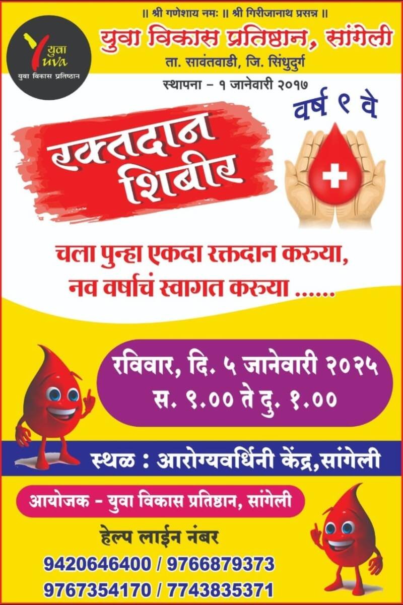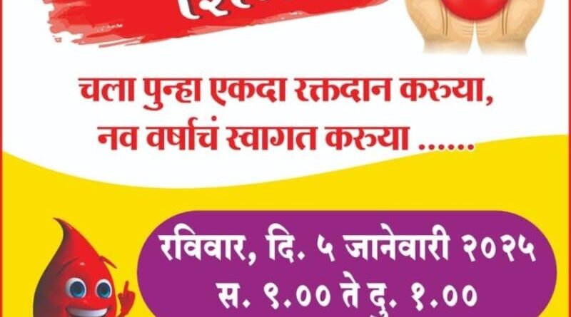 ЁЯЫС рдПрдХрджрд╛ рд░рдХреНрддрджрд╛рди рдХрд░реВрдпрд╛ рдирд╡реАрди рд╡рд░реНрд╖рд╛рдЪреЗ рд╕реНрд╡рд╛рдЧрдд рдХрд░реВрдпрд╛ ; рдпреБрд╡рд╛ рд╡рд┐рдХрд╛рд╕ рдкреНрд░рддрд┐рд╖реНрдард╛рди рдЪреНрдпрд╛ рд╡рддреАрдиреЗ рдЖрд╡рд╛рд╣рди