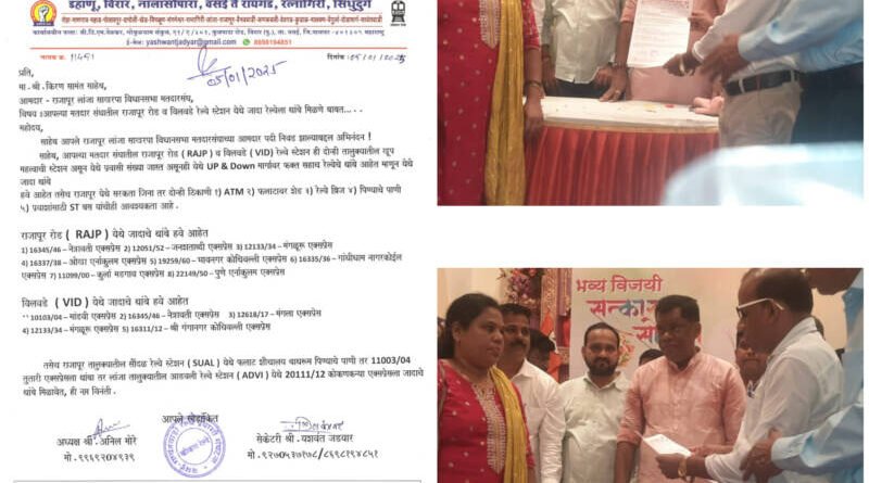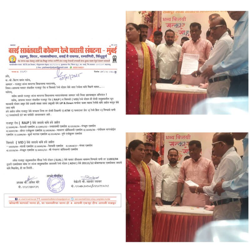 *🎴सावंतवाडी, दि- ०६:-* कोकण रेल्वेच्या प्रकल्पात ज्या महाराष्ट्र राज्याने सर्वाधिक म्हणजे २२% गुंतवणूक केली त्याच्या वाट्याला फक्त तीनच रेल्वे आल्या. त्यामुळेच प्रवाशांच्या तुलनेत ह्या मतदारसंघात रेल्वे मिळत नसल्याने चाकरमन्यांची प्रवासा दरम्याने मोठी गैरसोय होतेय,कोकण रेल्वे मार्गावर रत्नागिरी जिल्ह्यातील विलवडे व राजापूर रोड ही रेल्वे स्टेशनला दोन्ही तालुक्यातील बहुतेक गावे ही मुंबई ते राजापूर दरम्यानच्या प्रवासासाठी रेल्वे स्थानकावर अवलंबून आहेत,त्यामुळे राजापूर लांजा मतदारसंघातील ही दोन महत्त्वाची रेल्वे स्टेशन आहेत.