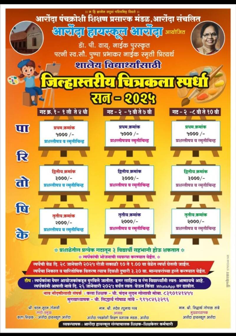 ЁЯЫС рдЖрд░реЛрдВрджрд╛ рд╣рд╛рдпрд╕реНрдХреВрд▓ рдпреЗрдереЗ реирео рдЬрд╛рдиреЗрд╡рд╛рд░реАрд▓рд╛ рдЬрд┐рд▓реНрд╣рд╛рд╕реНрддрд░реАрдп рдЪрд┐рддреНрд░рдХрд▓рд╛ рд╕реНрдкрд░реНрдзреЗрдЪреЗ рдЖрдпреЛрдЬрди