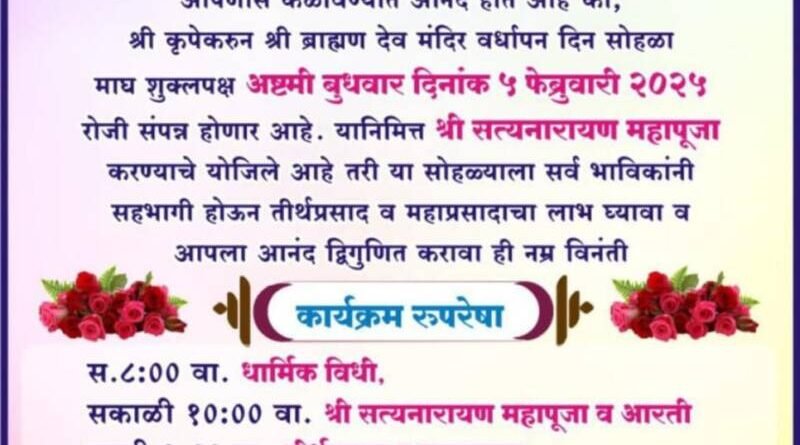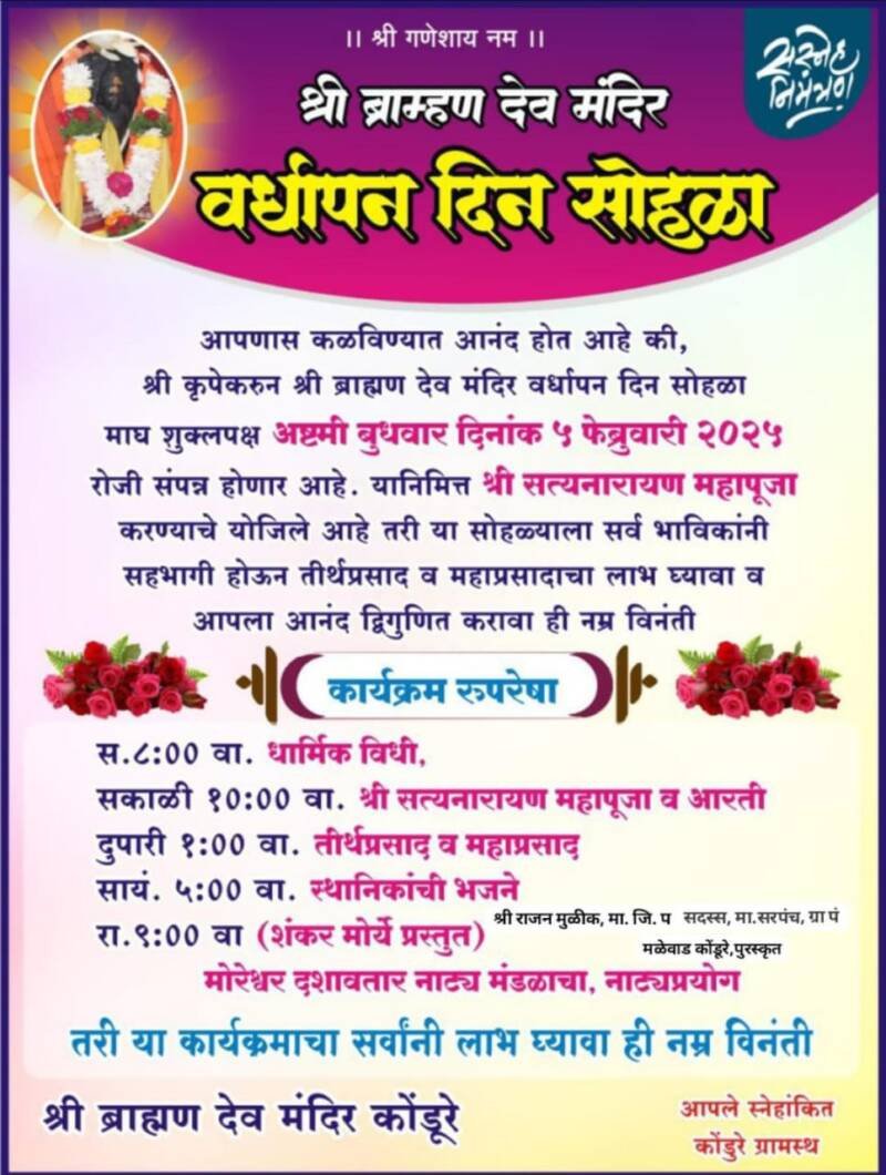 *ЁЯЫСрдХреЛрдВрдбреВрд░реЗ рдпреЗрдереАрд▓ рд╢реНрд░реА рдмреНрд░рд╛рд╣реНрдордг рджреЗрд╡ рдордВрджрд┐рд░ рд╡рд░реНрдзрд╛рдкрди рджрд┐рди рд╕реЛрд╣рд│рд╛ рел рдлреЗрдмреНрд░реБрд╡рд╛рд░реАрд▓рд╛*