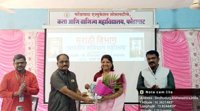 рдХрд╛рд░реНрдпрдХреНрд░рдорд╛рдЪреНрдпрд╛ рдкреНрд░рдореБрдЦ рд╡рдХреНрддреНрдпрд╛ рдХрд╡рдпрд┐рддреНрд░реА рд╕рд░рд┐рддрд╛ рдкрд╡рд╛рд░ рдореНрд╣рдгрд╛рд▓реНрдпрд╛ рдХреА, рдорд░рд╛рдареА рднрд╛рд╖рд╛ рд╣реА рдЖрдкрд▓реА рдЬреАрд╡рдирд╕рд╛рдереА рдЖрд╣реЗ. рддреА рдорд╛рдп рдЖрд╣реЗ. рддреНрдпрд╛рдореБрд│реЗ рддрд┐рдЪреНрдпрд╛рд╡рд░ рдЖрдкрд▓реА рдирд┐рд╕реНрд╕реАрдо рдкреНрд░реЗрдо рдЕрд╕рд▓реЗ рдкрд╛рд╣рд┐рдЬреЗ. рдЬреНрдпрд╛ рднрд╛рд╖реЗрдЪреНрдпрд╛ рдмреЛрд▓реА рдЬрд╛рд╕реНрдд рдЖрд╣реЗрдд рддреА рднрд╛рд╖рд╛ рд╕рдореГрджреНрдз рдЕрд╕рддреЗ. рдЬрд╢реА рдХреЛрдгрддреАрд╣реА рдирджреА рдЬрд┐рд▓рд╛ рдЬрд╛рд╕реНрдд рдЙрдкрдирджреНрдпрд╛ рдорд┐рд│рддрд╛рдд рдЖрдгрд┐ рддреА рдореЛрдареА рд╣реЛрддреЗ. рддрд╢реАрдЪ рдорд░рд╛рдареА рд╕реБрджреНрдзрд╛ рдореЛрдареА рдЭрд╛рд▓реА рдЖрд╣реЗ рддрд┐рд▓рд╛ рдЕрд╕рдгрд╛рд▒реНрдпрд╛ рдмреЛрд▓реАрдореБрд│реЗ. рднрд╛рд╖рд╛ рд╕рдореГрджреНрдз рд╣реЛрдгреНрдпрд╛рд╕рд╛рдареА рдЗрддрд┐рд╣рд╛рд╕рд╛рдиреЗ рдореЛрдареЗ рдпреЛрдЧрджрд╛рди рджрд┐рд▓реЗ рдЖрд╣реЗ. рдЖрдкрд▓реНрдпрд╛ рд╕рдорд╛рдЬрд╛рдд рдкреНрд░рддреНрдпреЗрдХ рдкреБрдврдЪреА рдкрд┐рдвреА рдорд╛рдЧрдЪреНрдпрд╛ рдкрд┐рдвреАрд▓рд╛ рдирд╛рд╡ рдареЗрд╡рдд рдЕрд╕рддреЗ. рдкрд░рдВрддреБ рдкреНрд░рддреНрдпреЗрдХ рдкрд┐рдвреА рд╣реА рдЖрдзреБрдирд┐рдХ рд╡рд┐рдЪрд╛рд░рд╛рдиреЗ рдЪрд╛рд▓рддреЗ рд╣реЗ рд╡рд╛рд╕реНрддрд╡ рдЖрд╣реЗ. рдпрд╛ рдЖрдзреБрдирд┐рдХ рд╡рд┐рдЪрд╛рд░рд╛рд▓рд╛ рд╡рд╛рдЪрдирд╛рдЪреА рдЬреЛрдб рдорд┐рд│рд╛рд▓реА рддрд░ рдЖрдкрд▓реЗ рдЖрдпреБрд╖реНрдп рдЬреНрдЮрд╛рдирдордп рд╣реЛрдКрди рдЬрд╛рддреЗ рдЖрдгрд┐ рдкрд░рд┐рд╡рд░реНрддрдирд╡рд╛рджреА рдкрд┐рдвреА рдирд┐рд░реНрдорд╛рдг рд╣реЛрддреЗ. рднрд╛рд╖реЗрдЪреНрдпрд╛ рдмрд╛рдмрддреАрдд рдЕрд╕реЗрдЪ рдЖрд╣реЗ. рдЖрдкрд▓реНрдпрд╛ рднрд╛рд╖реЗрддреВрди рдмреЛрд▓рд▓реЗ рдкрд╛рд╣рд┐рдЬреЗ, рд╡рд╛рдЪрд▓реЗ рдкрд╛рд╣рд┐рдЬреЗ, рд▓рд┐рд╣рд┐рд▓реЗ рдкрд╛рд╣рд┐рдЬреЗ рдЖрдгрд┐ рддреНрдпрд╛рдЪрдмрд░реЛрдмрд░ рдЕрдиреНрдп рднрд╛рд╖рд╛рдВрдЪрд╛рд╣реА рдЖрдкрдг рдЖрджрд░ рдХреЗрд▓рд╛ рдкрд╛рд╣рд┐рдЬреЗ. рддрд░рдЪ рдЖрдкрд▓реА рднрд╛рд╖рд╛ рд╡рд╛рдвреЗрд▓ рдЖрдгрд┐ рд╕рдореГрджреНрдз рд╣реЛрдИрд▓. рдЕрд╕реЗ рдкреНрд░рддрд┐рдкрд╛рджрди рдХреЗрд▓реЗ. рдЬрд╛рдЧрддрд┐рдХ рдорд░рд╛рдареА рднрд╛рд╖рд╛ рджрд┐рдирд╛рдЪреЗ рдФрдЪрд┐рддреНрдп рд╕рд╛рдзреВрди рдпрд╛рд╡реЗрд│реА рдХрд╡рдпрд┐рддреНрд░реА рд╕рд░рд┐рддрд╛ рдкрд╡рд╛рд░ рдпрд╛рдВрдиреА рдорд╣рд╛рд╡рд┐рджреНрдпрд╛рд▓рдпрд╛рд▓рд╛ рдЧреНрд░рдВрдерднреЗрдЯ рджрд┐рд▓реА.