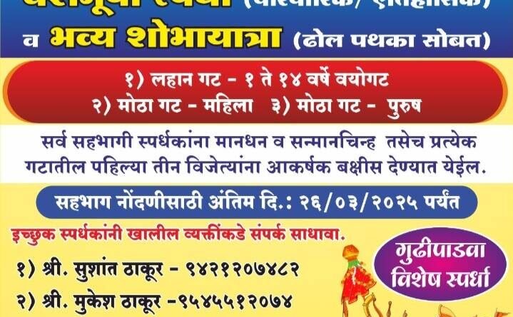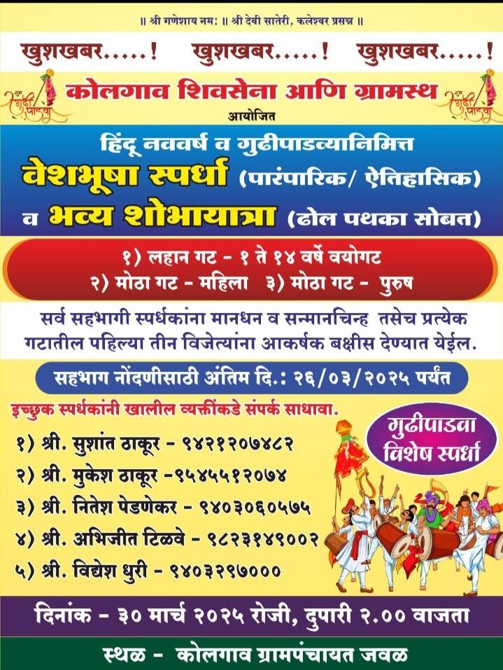 *ЁЯЫСрдХреЛрд▓рдЧрд╛рд╡ рдпреЗрдереЗ рд╣рд┐рдВрджреВ рдирд╡рд╡рд░реНрд╖ рд╡ рдЧреБрдвреАрдкрд╛рдбрд╡реНрдпрд╛рдирд┐рдорд┐рддреНрдд рд╡реЗрд╢рднреВрд╖рд╛ рд╕реНрдкрд░реНрдзрд╛…*