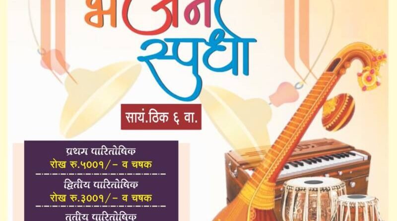 ЁЯЫСрдиреНрд╣рд╛рд╡реЗрд▓реА рдпреЗрдереЗ рел рдПрдкреНрд░рд┐рд▓ рд░реЛрдЬреА рдЬрд┐рд▓реНрд╣рд╛рд╕реНрддрд░реАрдп рднрдЬрди рд╕реНрдкрд░реНрдзреЗрдЪреЗ рдЖрдпреЛрдЬрди