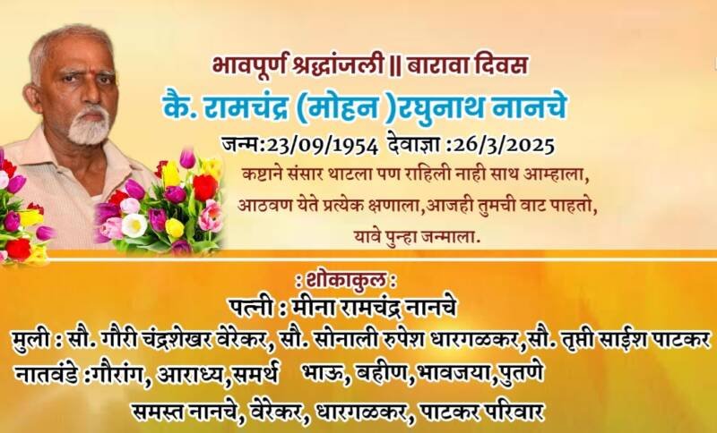 भावपूर्ण श्रद्धांजली || कै.रामचंद्र (मोहन )नानचे
