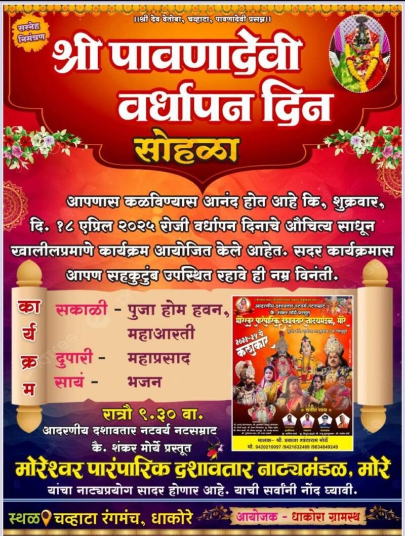 ЁЯЫС рдзрд╛рдХреЛрд░реЗ рдпреЗрдереАрд▓ рд╢реНрд░реА рдкрд╛рд╡рдгрд╛рджреЗрд╡реА рд╡рд░реНрдзрд╛рдкрди рджрд┐рди рд╕реЛрд╣рд│рд╛ резрео рдПрдкреНрд░рд┐рд▓ рд░реЛрдЬреА