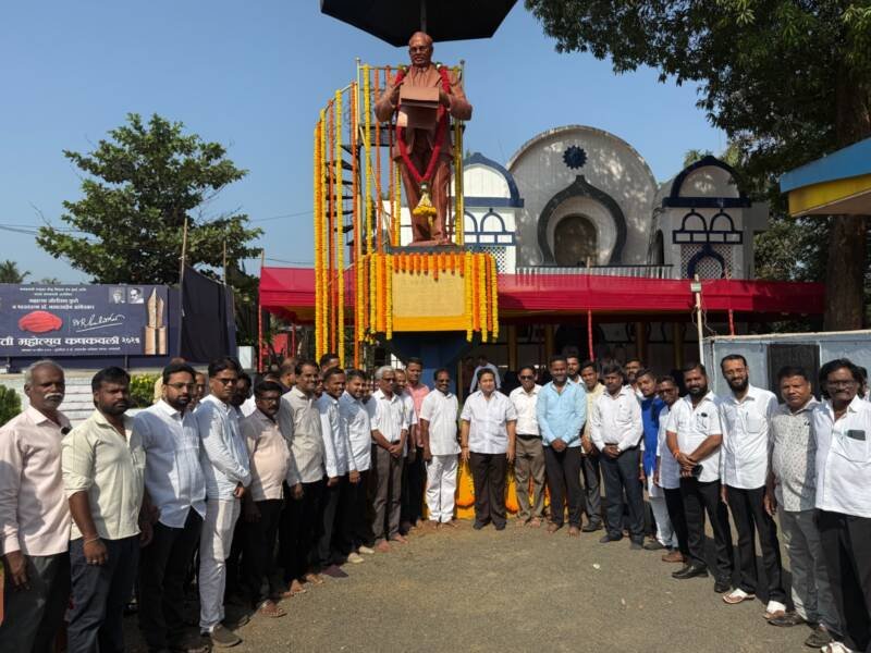 рднрд╛рд░рддреАрдп рдШрдЯрдиреЗрдЪреЗ рд╢рд┐рд▓реНрдкрдХрд╛рд░, рднрд╛рд░рддрд░рддреНрди, рдорд╣рд╛рдорд╛рдирд╡ рдбреЙ рдмрд╛рдмрд╛рд╕рд╛рд╣реЗрдм рдЖрдВрдмреЗрдбрдХрд░ рдпрд╛рдВрдЪреНрдпрд╛ резрейрек рд╡реНрдпрд╛ рдЬрдпрдВрддреАрджрд┐рдиреА рдХрдгрдХрд╡рд▓реА рд╢рд╣рд░рд╛рддреАрд▓ рдмреБрджреНрдзрд╡рд┐рд╣рд╛рд░ рдпреЗрдереАрд▓ рдбреЙ. рдмрд╛рдмрд╛рд╕рд╛рд╣реЗрдм рдЖрдВрдмреЗрдбрдХрд░ рдпрд╛рдВрдЪреНрдпрд╛ рдкреБрддрд│реНрдпрд╛рд▓рд╛ рдкреБрд╖реНрдкрд╣рд╛рд░ рдЕрд░реНрдкрдгрдХрд░реВрди рдЕрднрд┐рд╡рд╛рджрди рдХреЗрд▓реЗ. рдпрд╛рд╡реЗрд│реА рднрд╛рдЬрдкрд╛ рддрд╛рд▓реБрдХрд╛рдзреНрдпрдХреНрд╖ рдорд┐рд▓рд┐рдВрдж рдореЗрд╕реНрддреНрд░реА, рднрд╛рдЬрдк рдпреБрд╡рд╛ рдореЛрд░реНрдЪрд╛рдЪреЗ рдЬрд┐рд▓реНрд╣рд╛рдзреНрдпрдХреНрд╖ рддрдерд╛ рдХрд▓рдордардЪреЗ рд╕рд░рдкрдВрдЪ рд╕рдВрджреАрдк рдореЗрд╕реНрддреНрд░реА, рдХрдгрдХрд╡рд▓реА рдирдЧрд░рдкрдВрдЪрд╛рдпрддреАрдЪреЗ рдорд╛рдЬреА рдЙрдкрдирдЧрд░рд╛рдзреНрдпрдХреНрд╖ рдмрдВрдбреВ рд╣рд░реНрдгреЗ, рдЬрд┐рд▓реНрд╣рд╛ рдмреЕрдВрдХреЗрдЪреЗ рд╕рдВрдЪрд╛рд▓рдХ рд╡рд┐рдареНрдард▓ рджреЗрд╕рд╛рдИ, рдЕрдВрдХреБрд╢ рдХрджрдо, рднрд╛рдЬрдкрдЪреНрдпрд╛ рдЕрдиреБрд╕реВрдЪрд┐рдд рдЬрд╛рддреА рд╕реЗрд▓рдЪреЗ рдЬрд┐рд▓реНрд╣рд╛рдзреНрдпрдХреНрд╖ рдирд╛рдорджреЗрд╡ рдЬрд╛рдзрд╡, рдХрд▓рдордардЪреЗ рдорд╛рдЬреА рд╕рд░рдкрдВрдЪ рдирд┐рд╕рд╛рд░ рд╢реЗрдЦ, рдХрд│рд╕реБрд▓реАрдЪреЗ рд╕рд░рдкрдВрдЪ рд╕рдЪрд┐рди рдкрд╛рд░рдзрд┐рдпреЗ, рд╕рдореАрд░ рдкреНрд░рднреВрдЧрд╛рд╡рдХрд░, рдЧрдгреЗрд╢ рддрд│рдЧрд╛рд╡рдХрд░, рдорд╛рдЬреА рдирдЧрд░рд╕реЗрд╡рдХ рдЕреЕрдб. рд╡рд┐рд░рд╛рдЬ рднреЛрд╕рд▓реЗ, рдЧреМрддрдо рдЦреБрдбрдХрд░, рдХрд╛рдиреНрд╣рд╛ рдорд╛рд▓рдВрдбрдХрд░, рдЗрдмреНрд░рд╛рд╣рд┐рдо рд╢реЗрдЦ рдЖрджреА рдЙрдкрд╕реНрдерд┐рдд рд╣реЛрддреЗ. рдпрд╛рд╡реЗрд│реА рдордВрддреНрд░реА рдирд┐рддреЗрд╢ рд░рд╛рдгреЗ рдпрд╛рдВрдиреА рдмреБрджреНрдз рд╡рд┐рд╣рд╛рд░рд╛рдд рдЬрд╛рдКрди рддрдерд╛рдЧрдд рдЧреМрддрдо рдмреБрджреНрдз рдпрд╛рдВрдЪреЗ рджрд░реНрд╢рди рдШреЗрддрд▓реЗ. рддреНрдпрд╛рдирдВрддрд░ рдордВрддреНрд░реА рдирд┐рддреЗрд╢ рд░рд╛рдгреЗ рдпрд╛рдВрдирд╛ рдЖрдВрдмреЗрдбрдХрд░ рдЖрдпреБрдирдпрд╛рдВрдиреА рд╕рдВрд╡рд┐рдзрд╛рдирд╛рдЪреА рднреЗрдЯ рджрд┐рд▓реА.