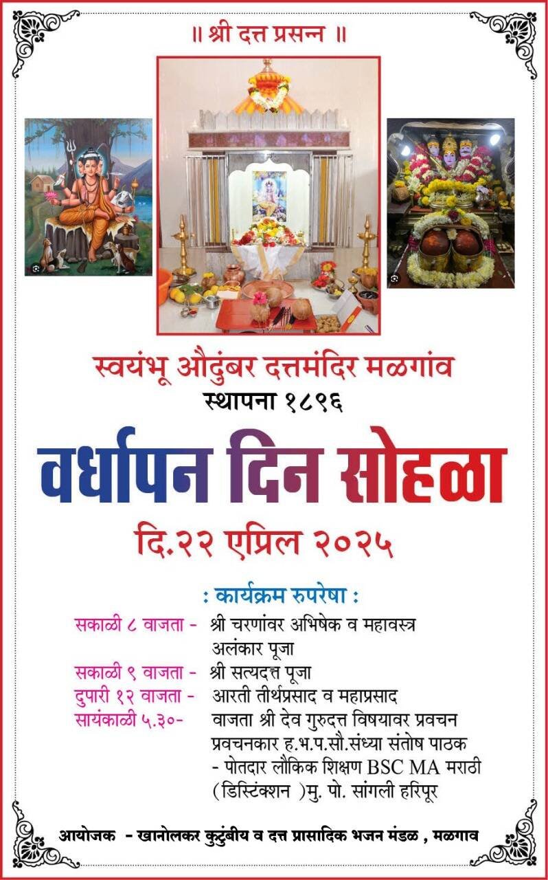 *ЁЯЫСрдорд│рдЧрд╛рд╡ рдпреЗрдереАрд▓ рд╕реНрд╡рдпрдВрднреВ рдФрджреБрдВрдмрд░ рджрддреНрдд рдордВрджрд┐рд░рд╛рдЪрд╛ рд╡рд░реНрдзрд╛рдкрди рджрд┐рди рд╕реЛрд╣рд│рд╛ реиреи рд░реЛрдЬреА*
