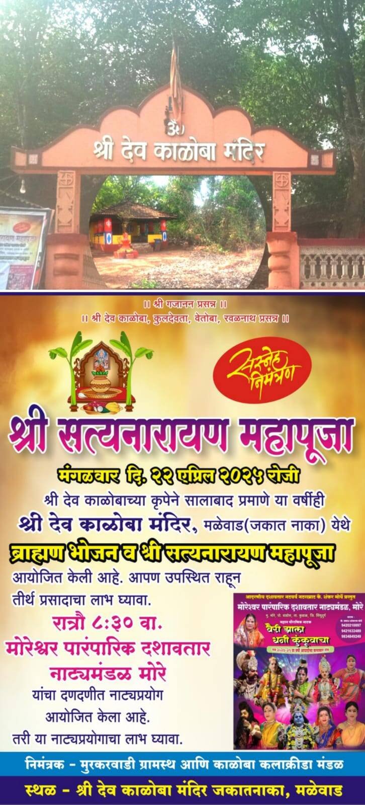 ЁЯЫС рдорд│реЗрд╡рд╛рдб рдпреЗрдереАрд▓ рд╢реНрд░реА рджреЗрд╡ рдХрд╛рд│реЛрдмрд╛ рдордВрджрд┐рд░рд╛рдд реиреи рдПрдкреНрд░рд┐рд▓ рд░реЛрдЬреА рд╢реНрд░реА рд╕рддреНрдпрдирд╛рд░рд╛рдпрдг рдорд╣рд╛рдкреВрдЬреЗрдЪреЗ рдЖрдпреЛрдЬрди