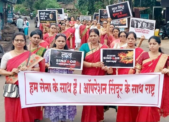*ЁЯО┤рдХреБрдбрд╛рд│, рджрд┐- резреп:-* рдЬрдореНрдореВ-рдХрд╛рд╢реНрдореАрд░рдордзреАрд▓ рдкрд╣рд▓рдЧрд╛рдо рдпреЗрдереАрд▓ рджрд╣рд╢рддрд╡рд╛рджреА рд╣рд▓реНрд▓реНрдпрд╛рдирдВрддрд░ рднрд╛рд░рддрд╛рдиреЗ рдСрдкрд░реЗрд╢рди рд╕рд┐рдВрджреВрд░ рджреНрд╡рд╛рд░реЗ рджрд╣рд╢рддрд╡рд╛рджреНрдпрд╛рдВрд╕рд╣ рдкрд╛рдХрд┐рд╕реНрддрд╛рдирд▓рд╛ рдЪреЛрдЦ рдкреНрд░рддреНрдпреБрддреНрддрд░ рджрд┐рд▓реЗ. рдкрд╣рд▓рдЧрд╛рдо рдпреЗрдереЗ рдЕрддрд┐рд░реЗрдХреА рд╣рд▓реНрд▓реНрдпрд╛рдд ” рд╕реНрддреНрд░рд┐рдпрд╛рдВрдЪреЗ рдХреБрдВрдХреВ” рдЯрд╛рд░реНрдЧреЗрдЯ рдХреЗрд▓реЗ рдЧреЗрд▓реЗ. рддреНрдпрд╛рдореБрд│реЗ рд╕рд┐рдВрджреВрд░ рд╣реЗ рдЕрддрд┐рд╢рдп рд╕рдорд░реНрдкрдХ рдЖрдгрд┐ рднрд╛рд╡рдирд┐рдХ рдирд╛рд╡ рдпрд╛ рдСрдкрд░реЗрд╢рдирд▓рд╛ рджрд┐рд▓реЗ. рдпрд╛рдЪреА рдЬрд╛рдгреАрд╡ рд╕рдорд╛рдЬрд╛рдд рдХрд░реВрди рджреЗрдгреНрдпрд╛рд╕рд╛рдареА, рд╣реА рдпрд╛рддреНрд░рд╛ рдорд╣рд┐рд▓рд╛ рд╡рд░реНрдЧрд╛рдиреЗ рдЖрдпреЛрдЬрд┐рдд рдХреЗрд▓реА рд╣реЛрддреА. рднрд╛рд░рддреАрдп рд╕реИрдиреНрдп рджрд▓, рджреЗрд╢рд╛рдЪреЗ рдкрдВрддрдкреНрд░рдзрд╛рди рдпрд╛рдВрдЪреНрдпрд╛ рдкреНрд░рддрд┐ рдХреГрддреНрдпрдЬреНрдЮрддрд╛, рдЕрднрд┐рдорд╛рди рд╡реНрдпрдХреНрдд рдХрд░рдгреНрдпрд╛рд╕рд╛рдареА рд╕рдорд╛рдЬрд╛рддреАрд▓ рд╕рд░реНрд╡ рд╕реНрддрд░рд╛рддреАрд▓ рдорд╣рд┐рд▓рд╛рдВрдиреА рд╣реА рдпрд╛рддреНрд░рд╛ рдХрд╛рдврд▓реА. рд░рд╡рд┐рд╡рд╛рд░реА рд╕рд╛рдпрдВрдХрд╛рд│реА рдпреЗрдереАрд▓ рд░рд╛рдЬрдорд╛рддрд╛ рдЬрд┐рдЬрд╛рдК рдЪреМрдХрд╛рдд рд░рд╛рдЬрдорд╛рддрд╛ рдЬрд┐рдЬрд╛рдК рдпрд╛рдВрдЪреНрдпрд╛ рдкреБрддрд│реНрдпрд╛рд▓рд╛ рдкреБрд╖реНрдкрд╣рд╛рд░ рдШрд╛рд▓реВрди рдпрд╛ рдпрд╛рддреНрд░реЗрд▓рд╛ рд╕реБрд░реБрд╡рд╛рдд рдЭрд╛рд▓реА. рдЧрд╛рдВрдзреАрдЪреМрдХ рдорд╛рд░реНрдЧреЗ рдбрд╛реЕ.рдмрд╛рдмрд╛рд╕рд╛рд╣реЗрдм рдЖрдВрдмреЗрдбрдХрд░ рдкреБрддрд│реНрдпрд╛ рдкрд░реНрдпрдВрдд рд╣реА рдпрд╛рддреНрд░рд╛ рдХрд╛рдврдгреНрдпрд╛рдд рдЖрд▓реА. рдпрд╛рд╡реЗрд│реА рднрд╛рдЬрдк рдорд╣рд┐рд▓рд╛ рдореЛрд░реНрдЪрд╛ рдкреНрд░рджреЗрд╢ рдЙрдкрд╛рдзреНрдпрдХреНрд╖ рд╕реМ.рд╢рд┐рд▓реНрдкрд╛ рдорд░рд╛рдареЗ, рд╕реМ.рдкреНрд░рдЬреНрдЮрд╛ рдврд╡рдг, рдорд╣рд┐рд▓рд╛ рдореЛрд░реНрдЪрд╛ рдЬрд┐рд▓реНрд╣рд╛рдзреНрдпрдХреНрд╖рд╛ рд╕реМ.рд╢реНрд╡реЗрддрд╛ рдХреЛрд░рдЧрд╛рд╡рдХрд░, рдЬрд┐рд▓реНрд╣рд╛ рд╕рд░рдЪрд┐рдЯрдгреАрд╕ рд╕реМ.рдЕрджрд┐рддреА рд╕рд╛рд╡рдВрдд, рдЬрд┐.рдк.рдЪреНрдпрд╛ рдорд╛рдЬреА рдЕрдзреНрдпрдХреНрд╖рд╛ рд╕рдорд┐рдзрд╛ рдирд╛рдИрдХ, рд╕реМ.рд╕реНрдорд┐рддрд╛ рджрд╛рдорд▓реЗ, рд╕реМ.рд╢рд░реНрд╡рд╛рдиреА рдЧрд╛рд╡рдХрд░, рд╡реЗрдВрдЧреБрд░реНрд▓реЗ рддрд╛рд▓реБрдХрд╛рдзреНрдпрдХреНрд╖рд╛ рд╕реМ. рд╕реБрдЬрд╛рддрд╛ рдкрдбрд╡рд│, рдХреБрдбрд╛рд│ рддрд╛рд▓реБрдХрд╛рдзреНрдпрдХреНрд╖рд╛ рд╕реМ.рдЖрд░рддреА рдкрд╛рдЯреАрд▓, рдУрд░реЛрд╕ рдордВрдбрд▓ рдЕрдзреНрдпрдХреНрд╖рд╛ рд╕реМ. рд╕реБрдкреНрд░рд┐рдпрд╛ рд╡рд╛рд▓рд╛рд╡рд▓рдХрд░, рдХреБрдбрд╛рд│ рд╢рд╣рд░ рдЕрдзреНрдпрдХреНрд╖рд╛ рд╕реМ.рдореБрдХреНрддреА рдкрд░рдм, рдорд╛рдЬреА рдирдЧрд░рд╛рдзреНрдпрдХреНрд╖рд╛ рдЖрдлрд░реАрди рдХрд░реЛрд▓, рдирдЧрд░рд╕ре
