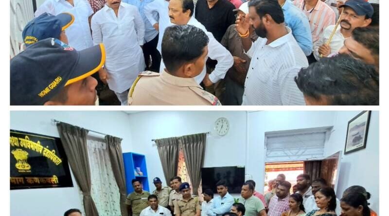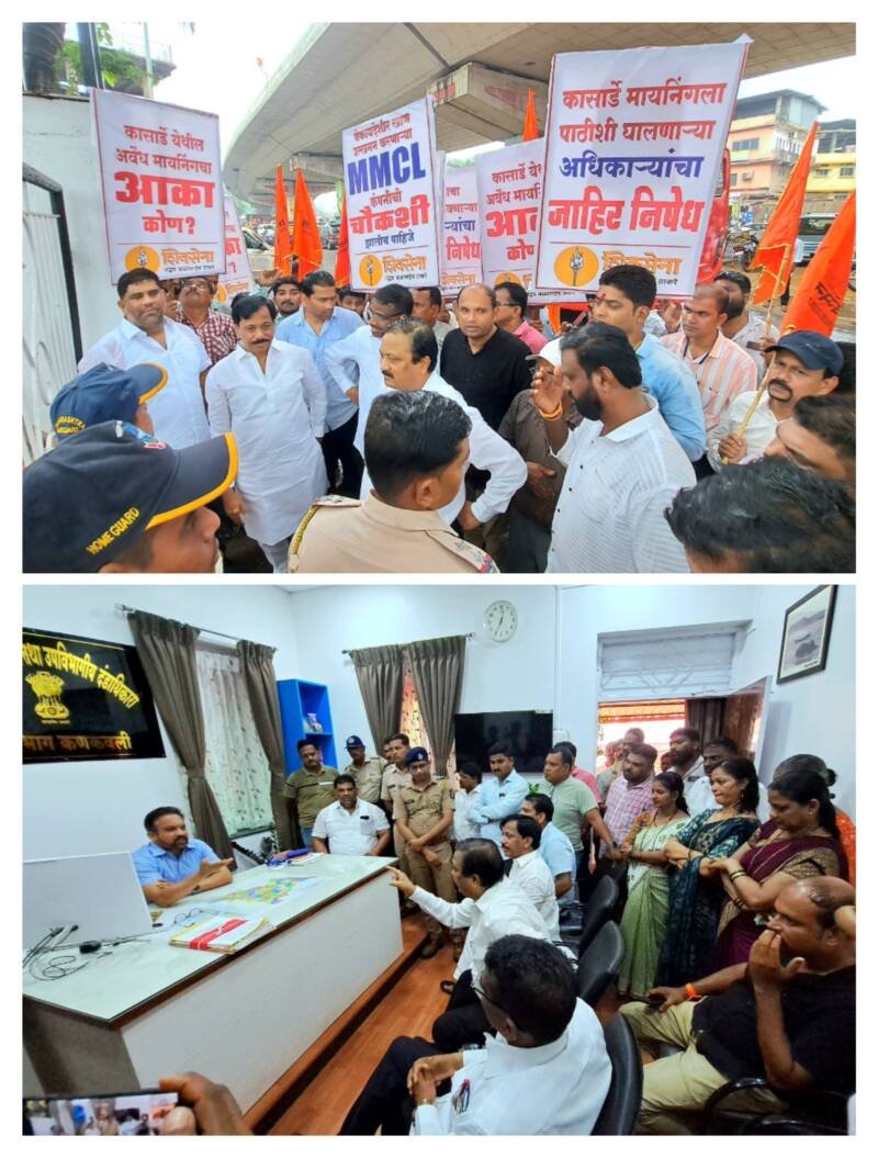 рдХрд╛рд╕рд╛рд░реНрдбреЗ рдкрд░рд┐рд╕рд░рд╛рддреАрд▓ рдЕрд╡реИрдз рд╕рд┐рд▓рд┐рдХрд╛ рдЙрддреНрдЦрдирди рд╡ рд╡рд╛рд╣рддреВрдХ рдкреНрд░рд╢реНрдирд╛рд╡рд░реВрди рд╢рд┐рд╡рд╕реЗрдирд╛ рдЙрдмрд╛рдард╛ рдкрдХреНрд╖рд╛рдЪреНрдпрд╛рд╡рддреАрдиреЗ рдкреНрд░рд╛рдВрддрд╛рдзрд┐рдХрд╛рд░реА рдХрд╛рд░реНрдпрд╛рд╕рдореЛрд░ рдзрд░рдгреЗ рдЖрдВрджреЛрд▓рди рдЫреЗрдбрд▓реЗ. тАШрдмреЗрдХрд╛рдпрджреЗрд╢реАрд░ рдЦрд╛рдг рдЙрддреНрдЦрдирди рдХрд░рдгрд╛рд▒реНрдпрд╛ рдПрдордПрдорд╕реА рдХрдВрдкрдиреАрдЪреА рдЪреМрдХрд╢реА рдЭрд╛рд▓реЗ рдкрд╛рд╣рд┐рдЬреЗтАЩ, рдХрд╛рд╕рд╛рд░реНрдбреЗ рдорд╛рдпрдирд┐рдВрдЧрд▓рд╛ рдкрд╛рдареАрд╢реА рдШрд╛рд▓рдгрд╛рд▒реНрдпрд╛ рдЕрдзрд┐рдХрд╛рд▒реНрдпрд╛рдВрдЪрд╛ рдЬрд╛рд╣реАрд░ рдирд┐рд╖реЗрдз рдЕрд╕реЛтАЩ, тАШрдХрд╛рд╕рд╛рд░реНрдбреЗ рдпреЗрдереАрд▓ рдЕрд╡реИрдз рдорд╛рдпрдирд┐рдВрдЧрдЪрд╛ рдЖрдХрд╛ рдХреЛрдгтАЩ, тАШрд╢рд╛рд╕рдирд╛рдЪреНрдпрд╛ рдорд╣рд╕реВрд▓ рдмреБрдбрд╡рд┐рдгрд╛рд▒реНрдпрд╛ рдЕрдзрд┐рдХрд╛рд▒реНрдпрд╛рдВрдЪрд╛ рдЬрд╛рд╣реАрд░ рдирд┐рд╖реЗрдз рдЕрд╕реЛтАЩ, тАШрд╢рд┐рд╡рд╕реЗрдирд╛ рдЙрдмрд╛рдард╛ рдкрдХреНрд╖рд╛рдЪрд╛ рд╡рд┐рдЬрдп рдЕрд╕реЛ, тАШрдЕрд╡реИрдз рд╕рд┐рд▓рд┐рдХрд╛ рдЙрддреНрдЦрдирди рд╡ рд╡рд╛рд╣рддреВрдХ рдкреНрд░рд╢реНрдиреА рд╣рдкреНрддреЗ рдШреЗрдгреЗ рдмрдВрдж рдХрд░рд╛ рдмрдВрдж рдХрд░рд╛тАЩ, тАШрд╢рд┐рд╡рд╕реЗрдирд╛рдкреНрд░рдореБрдЦ рдмрд╛рд│рд╛рд╕рд╛рд╣реЗрдм рдард╛рдХрд░реЗ рдпрд╛рдВрдЪрд╛ рд╡рд┐рдЬрдп рдЕрд╕реЛ, тАШрдЙрджреНрдзрд╡ рдард╛рдХрд░реЗ рддреБрдореНрд╣ рдЖрдЧреЗ рдмрдвреЛ рд╣рдо рддреБрдореНрд╣рд╛рд░реЗ рд╕рд╛рде рд╣реИтАЩ, рдЕрд╢реА рдШреЛрд╖рдгрд╛рдмрд╛рдЬреА рдХрд░рдд рд╢рд┐рд╡рд╕реЗрдиреЗрдЪреНрдпрд╛ рдиреЗрддреЗ, рдкрджрд╛рдзрд┐рдХрд╛рд░реА, рд╢рд┐рд╡рд╕реИрдирд┐рдХрд╛рдВрдиреА рдХрд╛рд░реНрдпрд╛рд▓рдпрд╛рд╡рд░ рдзрдбрдХ рджреЗрдгреНрдпрд╛рд╕рд╛рдареА рдЖрд▓реЗ рдЕрд╕рддрд╛ рдкреЛрд▓рд┐рд╕рд╛рдВрдиреА рддреНрдпрд╛рдВрдирд╛ рдЧреЗрдЯрдмрд╛рд╣реЗрд░ рд░реЛрдЦрд▓реЗ. рдпрд╛рд╡рд░реВрди рд╕рдВрддрдкреНрдд рдЭрд╛рд▓реЗрд▓реНрдпрд╛ рд╢рд┐рд╡рд╕реИрдирд┐рдХрд╛рдВрдиреА рдЪрд░реНрдЪреЗрд╕рд╛рдареА рдкреНрд░рд╛рдВрддрд╛рдзрд┐рдХрд╛рд▒реНрдпрд╛рдВрдирд╛ рдХрд╛рд░реНрдпрд╛рд▓рдпрд╛рдмрд╛рд╣реЗрд░ рдмреЛрд▓рд╡рд╛, рдЕрд╢реА рднреВрдорд┐рдХрд╛ рдШреЗрддрд▓реА. рдЕрдЦреЗрд░ рдкреЛрд▓реАрд╕ рдирд┐рд░реАрдХреНрд╖рдХ рдорд╛рд░реБрддреА рдЬрдЧрддрд╛рдк рдпрд╛рдВрдиреА рдкреНрд░рд╛рдВрддрд╛рдзрд┐рдХрд╛рд░реА рдЬрдЧрджреАрд╢ рдХрд╛рддрдХрд░ рдпрд╛рдВрдЪреНрдпрд╛рд╢реА рдЪрд░реНрдЪрд╛ рдХреЗрд▓реА. рдЪрд░реНрдЪреЗрдЕрдВрддреА рдХрд╛рддрдХрд░ рдпрд╛рдВрдиреА рд╢рд┐рд╡рд╕реЗрдиреЗрдЪреНрдпрд╛ рдиреЗрддреЗ, рдкрджрд╛рдзрд┐рдХрд╛рд▒реНрдпрд╛рдВрдирд╛ рдЪрд░реНрдЪреЗрд╕рд╛рдареА рдЖрдкрд▓реНрдпрд╛ рджрд╛рд▓рдирд╛рдд рдмреЛрд▓реВрди рдШреЗрддрд▓реЗ. рдпрд╛рд╡реЗрд│реА рдорд╛рдЬреА рдЖрдорджрд╛рд░ рдкрд░рд╢реБрд░рд╛рдо рдЙрдкрд░рдХрд░, рд░рд╛рдЬрди рддреЗрд▓реА, рд╡реИрднрд╡ рдирд╛рдИрдХ, рдорд╛рдЬреА рдЬрд┐.рдк.рдЕрдзреНрдпрдХреНрд╖ рд╕рддреАрд╢ рд╕рд╛рд╡рдВрдд, рдпреБрд╡рд╕реЗрдиреЗрдЪреЗ рдЬрд┐рд▓реНрд╣рд╛рдкреНрд