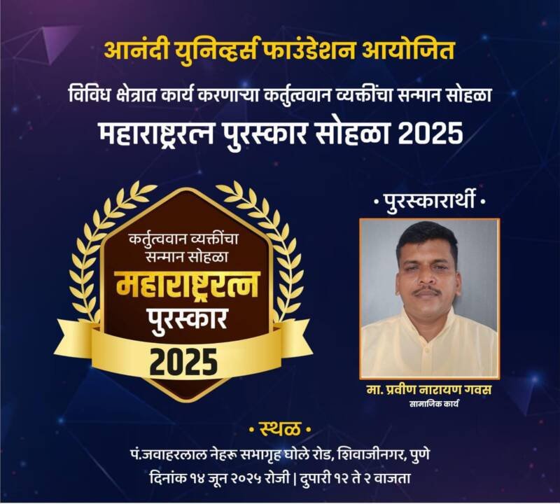 ЁЯЫС рд╕рд╛рдорд╛рдЬрд┐рдХ рдХрд╛рд░реНрдпрд╛рддреАрд▓ рдпреЛрдЧрджрд╛рдирд╛рдЪреА рджрдЦрд▓, рдкреНрд░рд╡реАрдг рдЧрд╡рд╕ рдпрд╛рдВрдирд╛ ‘рдорд╣рд╛рд░рд╛рд╖реНрдЯреНрд░рд░рддреНрди рдкреБрд░рд╕реНрдХрд╛рд░ 2025’