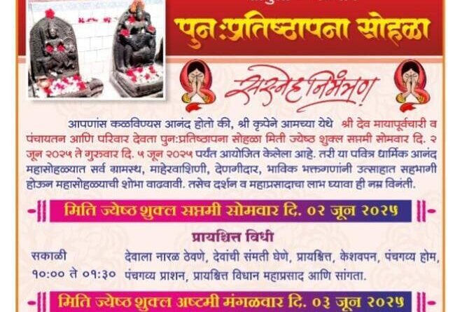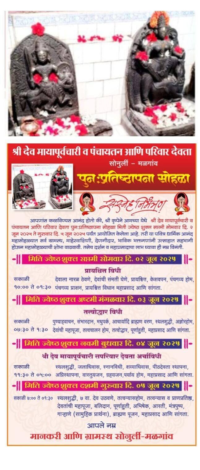 ЁЯЫС реи рдЬреВрдирдкрд╛рд╕реВрди рд╢реНрд░реА рджреЗрд╡ рдорд╛рдпрд╛рдкреВрд░реНрд╡рдЪрд╛рд░реА рд╡ рдкрдВрдЪрд╛рдпрддрди рдЖрдгрд┐ рдкрд░рд┐рд╡рд╛рд░ рджреЗрд╡рддрд╛ рдореВрд░реНрддреА рдкреБрдирдГ рдкреНрд░рддрд┐рд╖реНрдард╛рдкрдирд╛ рд╕реЛрд╣рд│реНрдпрд╛рд╕ рд╕реБрд░реБрд╡рд╛рдд