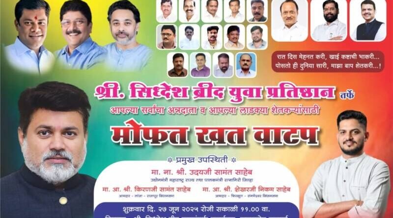 *ЁЯО┤рдЪрд┐рдкрд│реВрдг, рджрд┐- реирем:-* рд╕рдВрдЧрдореЗрд╢реНрд╡рд░ рддрд╛рд▓реБрдХреНрдпрд╛рддреАрд▓ рдХрдбрд╡рдИ рдпреЗрдереАрд▓ рд╕рд┐рджреНрдзреЗрд╢ рдмреНрд░реАрдж рдпреБрд╡рд╛ рдкреНрд░рддрд┐рд╖реНрдард╛рди рдпрд╛рдВрдЪреНрдпрд╛рд╡рддреАрдиреЗ рдЖрдЬ рд╢реБрдХреНрд░рд╡рд╛рд░ рджрд┐.реирен рдЬреВрди рд░реЛрдЬреА рд╕рдХрд╛рд│реА резрез рд╡рд╛рдЬрддрд╛ рдХрдбрд╡рдИ рдмрд╛рдЬрд╛рд░рдкреЗрдареЗрддреАрд▓ рд╕рд┐рджреНрдзреЗрд╢ рдмреНрд░реАрдж рдЬрдирд╕рдВрдкрд░реНрдХ рдХрд╛рд░реНрдпрд╛рд▓рдпрд╛рдд рдорд╣рд╛рд░рд╛рд╖реНрдЯреНрд░рд╛рдЪреЗ рдЙрджреНрдпреЛрдЧ рдордВрддреНрд░реА рддрдерд╛ рд╢рд┐рд╡рд╕реЗрдирд╛ рдиреЗрддреЗ рдирд╛.рдбреЙ.рдЙрджрдп рд╕рд╛рдордВрдд рдпрд╛рдВрдЪреНрдпрд╛ рд╣рд╕реНрддреЗ рдпреЗрдереАрд▓ рд╢реЗрддрдХрд▒реНрдпрд╛рдВрдирд╛ рдореЛрдлрдд рдЦрдд рд╡рд╛рдЯрдк рдХреЗрд▓реЗ рдЬрд╛рдгрд╛рд░ рдЖрд╣реЗ рдЕрд╢реА рдорд╛рд╣рд┐рддреА рд╕рд┐рджреНрдзреЗрд╢ рдмреНрд░реАрдж рдпреБрд╡рд╛ рдкреНрд░рддрд┐рд╖реНрдард╛рдирдЪреЗ рдкреНрд░рдореБрдЦ рд╢рд┐рд╡рд╕реЗрдирд╛ рдпреБрд╡рд╛ рдиреЗрддреЗ рд╕рд┐рджреНрдзреЗрд╢ рдмреНрд░реАрдж рдпрд╛рдВрдиреА рдкрддреНрд░рдХрд╛рд░рд╛рдВрд╢реА рдмреЛрд▓рддрд╛рдирд╛ рджрд┐рд▓реА.