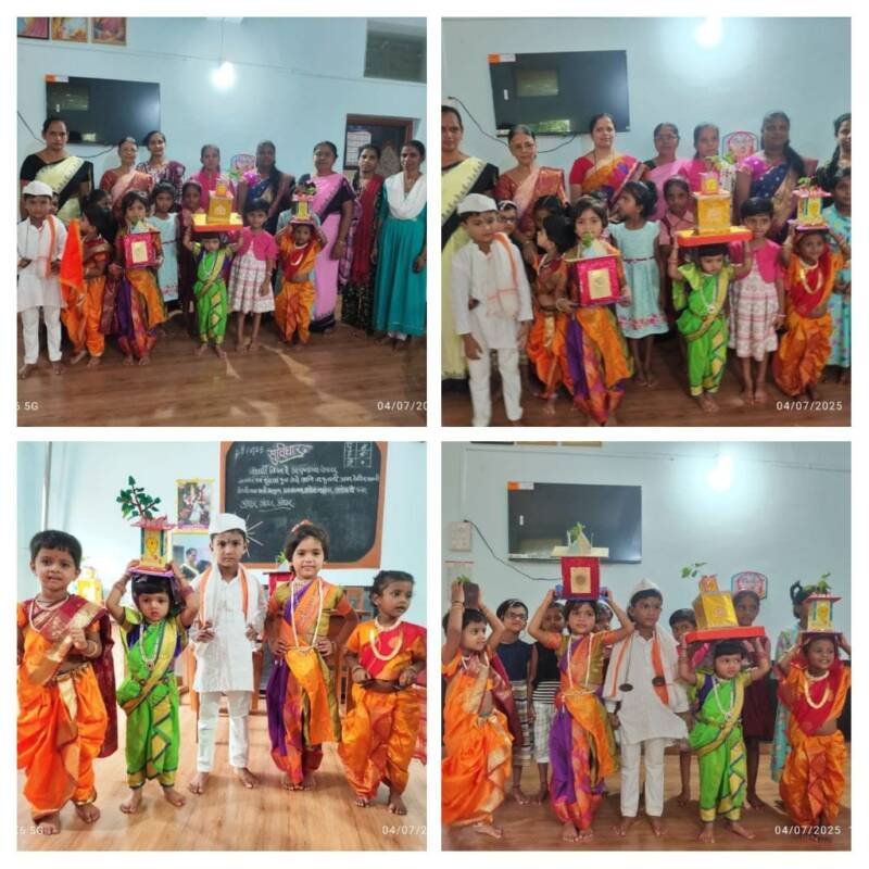 рдЖрд╖рд╛рдвреА рдПрдХрд╛рджрд╢реАрдирд┐рдорд┐рддреНрдд рдЖрдпреЛрдЬрд┐рдд рдХреЗрд▓реЗрд▓реНрдпрд╛ рдпрд╛ рдЙрдкрдХреНрд░рдорд╛рдд рдЕрдВрдЧрдгрд╡рд╛рдбреАрддреАрд▓ рдореБрд▓реЗ, рд╢рд┐рдХреНрд╖рдХ рд╡ рдкрд╛рд▓рдХ рд╕рд╣рднрд╛рдЧреА рдЭрд╛рд▓реЗ рд╣реЛрддреЗ. рдореБрд▓реАрдВрдиреА рдирдКрд╡рд╛рд░ рд╕рд╛рдбреА, рдореБрд▓рд╛рдВрдиреА рд╕рджрд░рд╛, рдЯреЛрдкреА рдЖрджреА рдкрд╛рд░рдВрдкрд░рд┐рдХ рд╡реЗрд╖ рдкрд░рд┐рдзрд╛рди рдХреЗрд▓рд╛ рд╣реЛрддрд╛. рдореБрд▓реАрдВрдиреА рдбреЛрдХреНрдпрд╛рд╡рд░ рддреБрд│рд╢реА рд╡реГрдВрджрд╛рд╡рди, рд╣рд╛рддрд╛рдд рджрд┐рдВрдбреА рдкрддрд╛рдХрд╛, рддрд░ рдореБрд▓рд╛рдВрдиреА рд╣рд╛рддрд╛рдд рдЯрд╛рд│, рднрдЧрд╡рд╛ рдЭреЗрдВрдбрд╛ рдШреЗрдд рдпрд╛рдд рд╕рд╣рднрд╛рдЧреА рдЭрд╛рд▓реЗ рд╣реЛрддреЗ. рдпрд╛ рдЙрдкрдХреНрд░рдорд╛рдд рдЕрдирдиреНрдпрд╛ рдкрд╛рдЯреАрд▓, рдирд┐рдХрд┐рддрд╛ рдХрд╛рд░рд┐рд╡рдбреЗрдХрд░, рдХрд╛рд░реНрддрд┐рдХреА рдирд╛рд░реНрд╡реЗрдХрд░, рдзреАрд░рдЬ рд░рд╛рдКрд│, рдЧрд╛рд░реНрдЧреА рдирд╛рд░реНрд╡реЗрдХрд░, рдорд╛рд╣реА рдЧреЛрд╕рд╛рд╡реА, рдХрд╛рд╡реНрдпрд╛ рд╡рд╛рд░рдВрдЧ, рдирд┐рдзреА рд░рд╛рдКрд│, рдЖрд░рд╛рдзреНрдпрд╛ рдкрд╡рд╛рд░ рдордирд╡рд╛ рдирд╛рд░реНрд╡реЗрдХрд░ рдЖрджреА рдЪрд┐рдореБрдХрд▓реНрдпрд╛рдВрд╕рд╣ рдЬрд┐рд▓реНрд╣рд╛ рдкрд░рд┐рд╖рдж рд╢рд╛рд░рджрд╛ рд╡рд┐рджреНрдпрд╛рд▓рдпрд╛рдЪреНрдпрд╛ рдЕрд╕реНрдорд┐рддрд╛ рдЧреЛрд╡реЗрдХрд░, рдЕрдВрдЧрдгрд╡рд╛рдбреА рд╕реЗрд╡рд┐рдХрд╛ рд╡рд┐рдирдпрд╛ рдкрд╡рд╛рд░, рд╕рд░реАрддрд╛ рдкрд╛рдЯреАрд▓, рдорджрддрдиреАрд╕ рд╡реИрд╢рд╛рд▓реА рдирд╛рдИрдХ, рдЙрд░реНрд╡реА рдХрд╛рд░рд┐рд╡рдбреЗрдХрд░, рд╕реНрд╡рд░рд╛ рд╡рд╛рд░рдВрдЧ, рд╕реБрд╡рд░реНрдгрд╛ рд░рд╛рдКрд│, рдЬрд╛рдиреНрд╣рд╡реА рдирд╛рд░реНрд╡реЗрдХрд░, рдкреБрдирдо рдирд╛рд░реНрд╡реЗрдХрд░ рдЖрджреА рд╢рд┐рдХреНрд╖рдХ рд╡ рдкрд╛рд▓рдХ рд╕рд╣рднрд╛рдЧреА рдЭрд╛рд▓реЗ рд╣реЛрддреЗ. рдЕрдВрдЧрдгрд╡рд╛рдбреА рд╢рд╛рд│реЗрдЪреНрдпрд╛ рд╢рд┐рдХреНрд╖рд┐рдХрд╛ рд╡ рд╕рд░реНрд╡ рдкрд╛рд▓рдХ рдпрд╛рдВрдиреА рдпрд╛рд╕рд╛рдареА рд╡рд┐рд╢реЗрд╖ рдкрд░рд┐рд╢реНрд░рдо рдШреЗрддрд▓реЗ.
