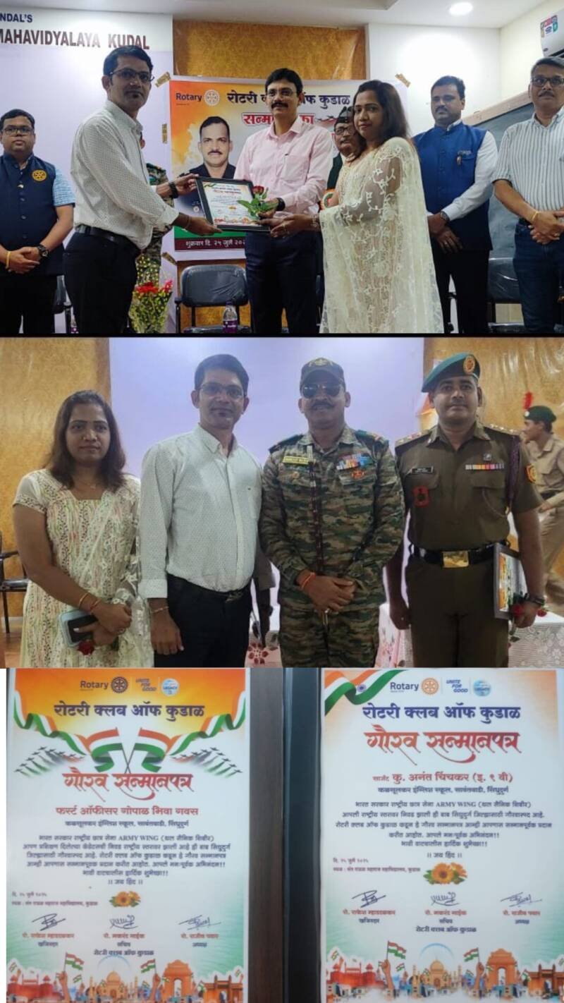 ЁЯО┤рд╕рд╛рд╡рдВрддрд╡рд╛рдбреА, рджрд┐-реирен:- рд░реЛрдЯрд░реА рдХреНрд▓рдм рдСрдл рдХреБрдбрд╛рд│ рдЪреНрдпрд╛ рд╡рддреАрдиреЗ рд╕рдиреНрдорд╛рди рдпреБрджреНрдзрд╛рдЪрд╛ рд╣рд╛ рдХрд╛рд░реНрдпрдХреНрд░рдо рдЖрдпреЛрдЬрд┐рдд рдХрд░рдгреНрдпрд╛рдд рдЖрд▓рд╛ рд╣реЛрддрд╛. рдпрд╛ рдХрд╛рд░реНрдпрдХреНрд░рдорд╛рджрд░рдореНрдпрд╛рди рднрд╛рд░рддреАрдп рд╕реЗрдиреЗрдЪреЗ рдЕрдБрдЯреА рдПрдЕрд░ рдбрд┐рдлреЗрдиреНрд╕ рд░реЗрдЬрд┐рдореЗрдВрдЯрдЪреЗ рд╕реБрднреЗрджрд╛рд░ рдореЗрдЬрд░ рд╕рдВрдЬрдп рд╕рд╛рд╡рдВрдд рдпрд╛рдВрдЪрд╛ рддреНрдпрд╛рдЪрдмрд░реЛрдмрд░ рд░рд╛рд╖реНрдЯреНрд░реАрдп рдЫрд╛рддреНрд░ рд╕реЗрдиреЗрдЪреНрдпрд╛ рдЕрдзрд┐рдХрд╛рд░реА рд╡ рдЫрд╛рддреНрд░ рд╕реИрдирд┐рдХрд╛рдВрдЪреНрдпрд╛ рд╡рддреАрдиреЗ рддреНрдпрд╛рдВрдЪреНрдпрд╛ рдкрд╛рд▓рдХрд╛рдВрдЪрд╛ рд╕рддреНрдХрд╛рд░ рд╕рдорд╛рд░рдВрдн рдХреБрдбрд╛рд│ рдпреЗрдереАрд▓ рд╕рдВрдд рд░рд╛рдКрд│ рдорд╣рд╛рд░рд╛рдЬ рдорд╣рд╛рд╡рд┐рджреНрдпрд╛рд▓рдпрд╛рдордзреНрдпреЗ рдиреБрдХрддрд╛рдЪ рдкрд╛рд░ рдкрдбрд▓рд╛. рдпрд╛ рд╕реЛрд╣рд│реНрдпрд╛рдордзреНрдпреЗ рдХрд│рд╕реБрд▓рдХрд░ рдЗрдВрдЧреНрд▓рд┐рд╢ рд╕реНрдХреВрд▓ рд╡ рдЖрдп.рдмреА. рд╕рдпреНрдпрдж рдХрдирд┐рд╖реНрда рдорд╣рд╛рд╡рд┐рджреНрдпрд╛рд▓рдпрд╛рдЪреЗ рд╕рд╣рд╛рдпреНрдпрдХ рд╢рд┐рдХреНрд╖рдХ рддрдерд╛ рдПрдирд╕реАрд╕реА рдЕрдзрд┐рдХрд╛рд░реА рдЧреЛрдкрд╛рд│ рдЧрд╡рд╕ рд╡ рддреНрдпрд╛рдВрдЪрд╛ рдЫрд╛рддреНрд░ рд╕реИрдирд┐рдХ рд╕рд╛рд░реНрдЬрдВрдЯ рдЕрдирдВрдд рдЕрднрд┐рдЬреАрдд рдЪрд┐рдВрдЪрдХрд░ рдпрд╛рдЪреА рд░рд╛рд╖реНрдЯреНрд░реАрдп рд╕реНрддрд░рд╛рд╡рд░реАрд▓ рдерд▓ рд╕реИрдирд┐рдХ рд╢рд┐рдмрд┐рд░рд╛рд╕рд╛рдареА рдирд┐рд╡рдб рдЭрд╛рд▓реНрдпрд╛рдиреЗ рдХреМрддреБрдХ рдЧреМрд░рд╡ рд╕рдиреНрдорд╛рди рдХрд░рдгреНрдпрд╛рдд рдЖрд▓рд╛. рд░рддреНрдирд╛рдЧрд┐рд░реА рд╕рд┐рдВрдзреБрджреБрд░реНрдЧ,рдХреЛрд▓реНрд╣рд╛рдкреВрд░,рд╕рд╛рдВрдЧрд▓реА, рд╕рд╛рддрд╛рд░рд╛, рдХрд░рд╛рдб рдЬрд┐рд▓реНрд╣реНрдпрд╛рдВрдордзреВрди рдирд┐рд╡рдбрдХ рд╡рд┐рджреНрдпрд╛рд░реНрдереНрдпрд╛рдВрдЪреА рдпрд╛ рд╢рд┐рдмрд┐рд░рд╛рд╕рд╛рдареА рдирд┐рд╡рдб рдЭрд╛рд▓реА рдЕрд╕реВрди рддреНрдпрд╛рдордзреНрдпреЗ рдЕрдирдВрдд рдЪрд┐рдВрдЪрдХрд░ рд╣рд╛ рд░рд╛рдпрдлрд▓ рд╕реНрдиреЕрдк рд╢реВрдЯрд┐рдВрдЧ рдкреНрд░рдХрд╛рд░рд╛рдордзреНрдпреЗ рдкреБрдвреЗ рдЬрд╛рдд рдЖрд╣реЗ.