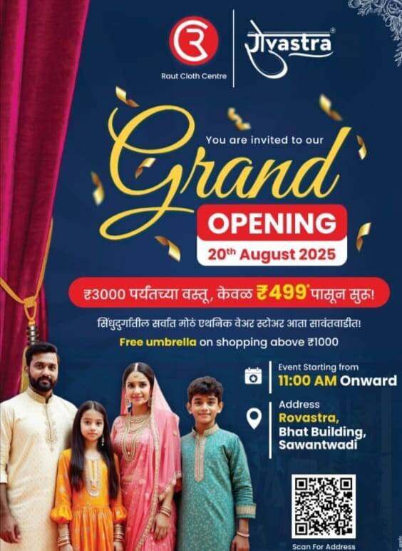 *🔖 सिंधुदुर्गातील पहीलेच सर्वात मोठे 🏨 एथनिक वेअर स्टोअर 👗आता सावंतवाडीत…!!🥳*