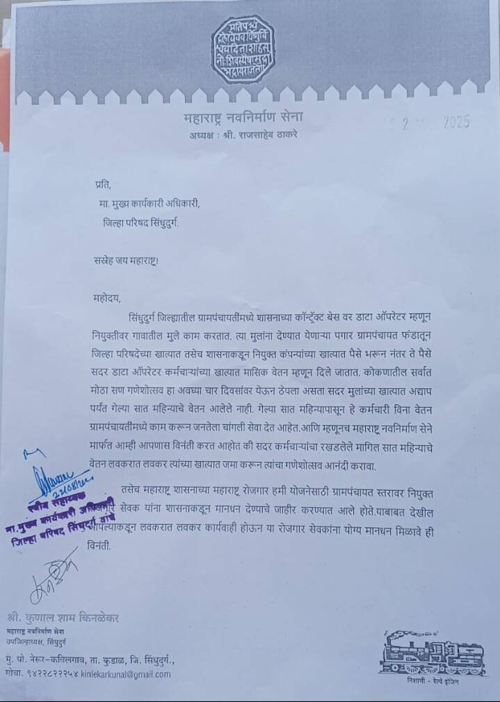 ЁЯЫСрд╕рд┐рдВрдзреБрджреБрд░реНрдЧрд╛рддреАрд▓ рдЧреНрд░рд╛рдордкрдВрдЪрд╛рдпрдд рдбрд╛рдЯрд╛ рдСрдкрд░реЗрдЯрд░ рд╕рд╣рд╛ рдорд╣рд┐рдиреНрдпрд╛рдВрдкрд╛рд╕реВрди рд╡реЗрддрдирд╡рд┐рдирд╛ тАУ рдордирд╕реЗрдЪрд╛ рдЬрд┐рд▓реНрд╣рд╛ рдкрд░рд┐рд╖рдж рдореБрдЦреНрдп рдХрд╛рд░реНрдпрдХрд╛рд░реА рдЕрдзрд┐рдХрд╛рд▒реНрдпрд╛рдВрдирд╛ рдЗрд╢рд╛рд░рд╛.