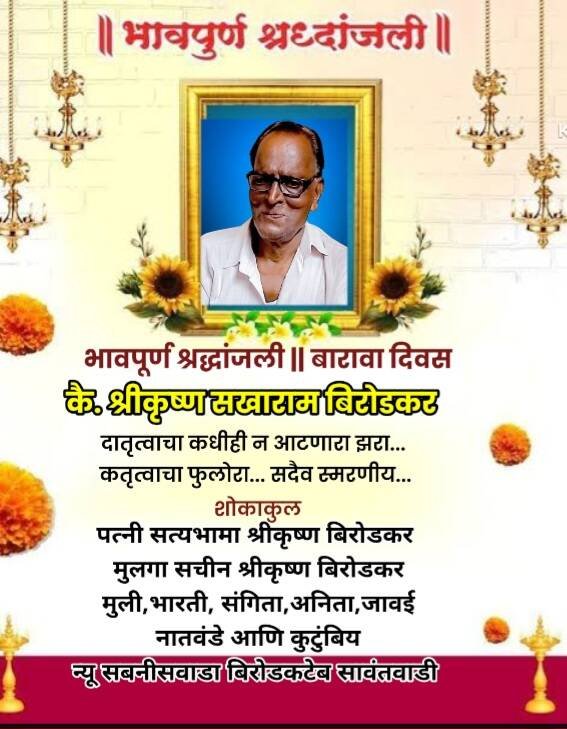 भावपूर्ण श्रद्धांजली || कै. श्रीकृष्ण सखाराम बिरोडकर