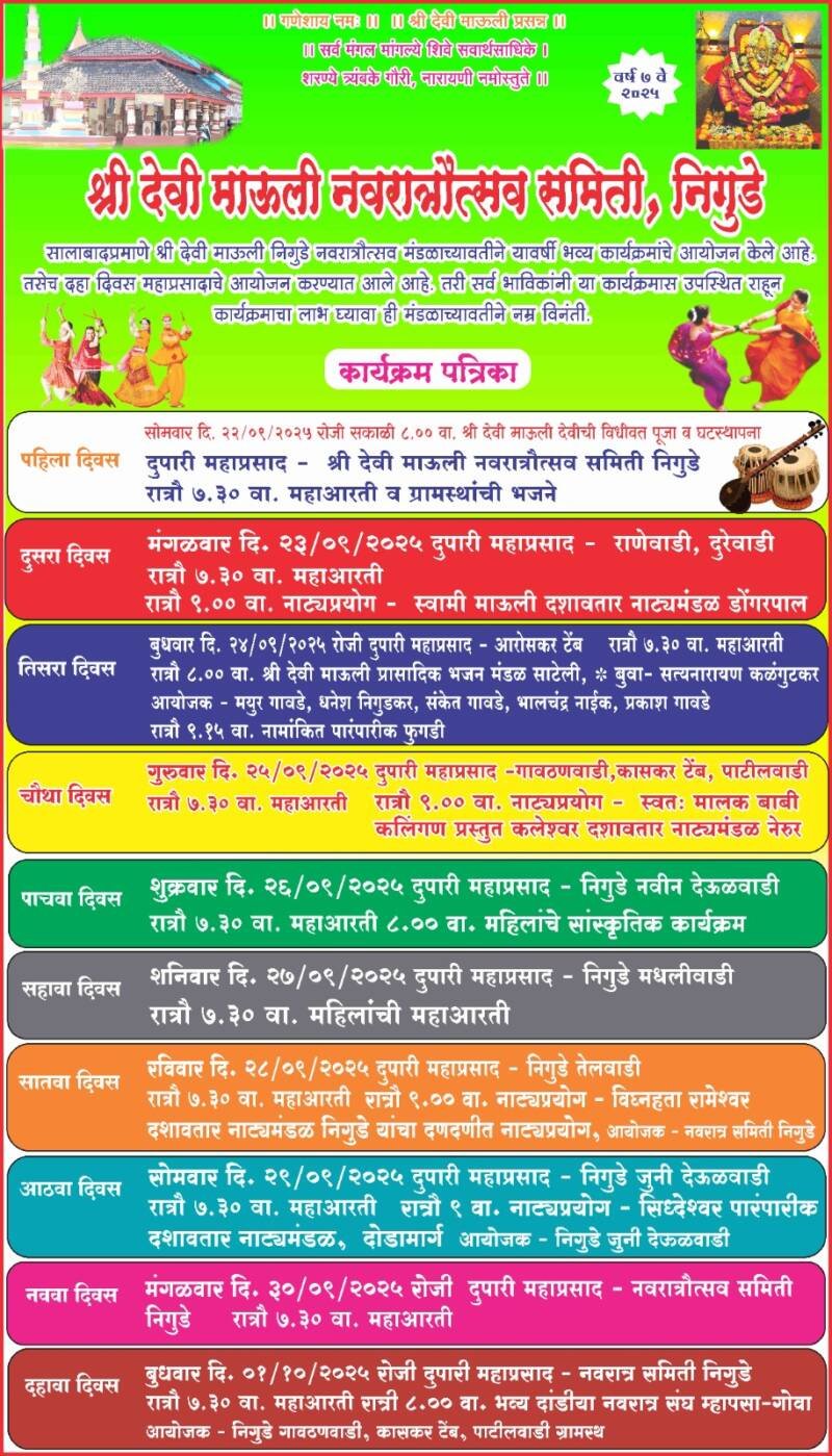 ЁЯЫС рдирд┐рдЧреБрдбреЗ рдпреЗрдереЗ рджреЗрд╡реА рдорд╛рдКрд▓реА рдирд╡рд░рд╛рддреНрд░реЛрддреНрд╕рд╡рд╛рдЪрд╛ рдЙрддреНрд╕рд╛рд╣ ; рджрд╣рд╛ рджрд┐рд╡рд╕рд╛рдВрдЪреЗ рднрд╡реНрдп рдЖрдпреЛрдЬрди