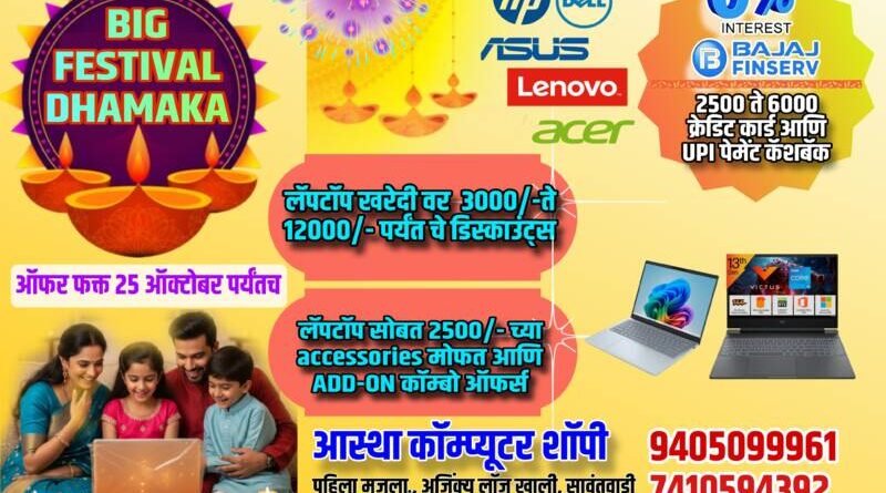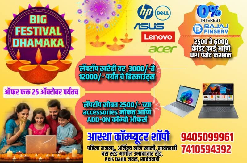 *आस्था कॉम्प्यूटर शॉपी* सावंतवाडी यांच्या तर्फे खास दिवाळी निमित्त 🪔🪔🪔🪔 *BIG FESTIVAL DHAMAKA OFFER* सादर